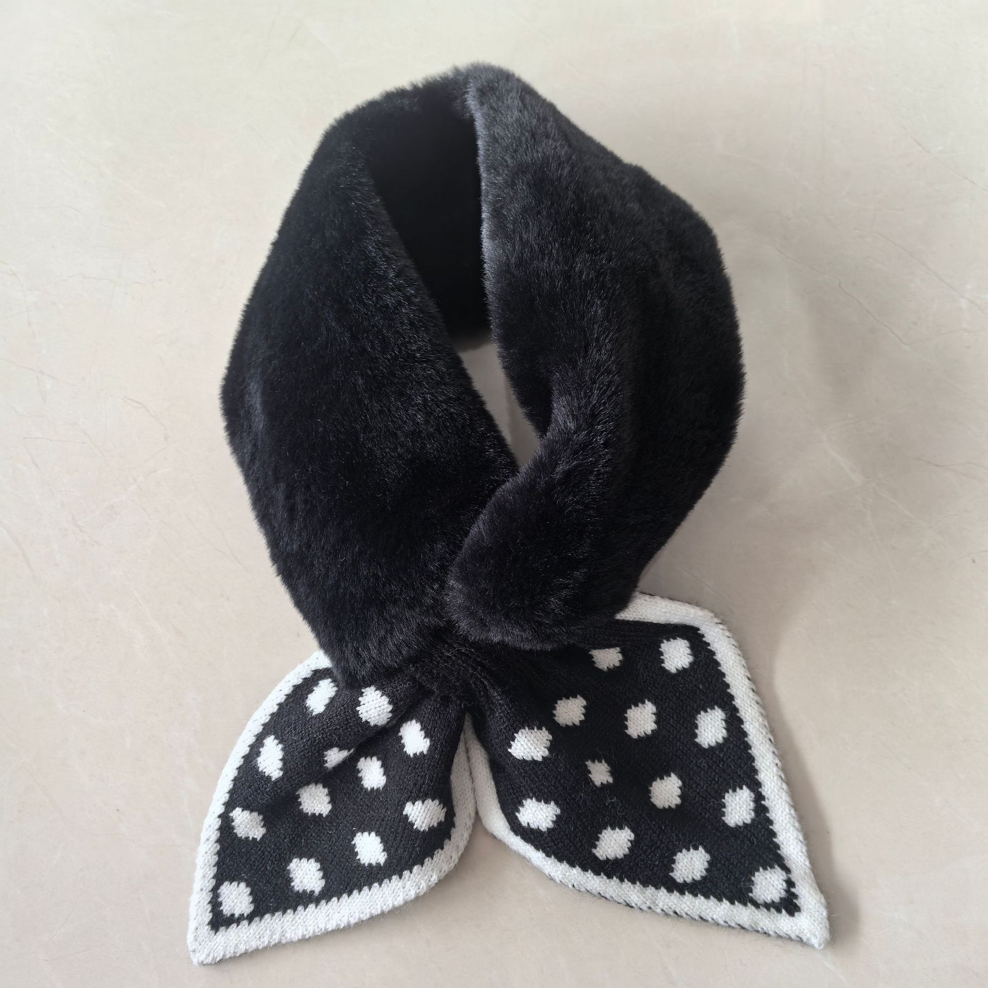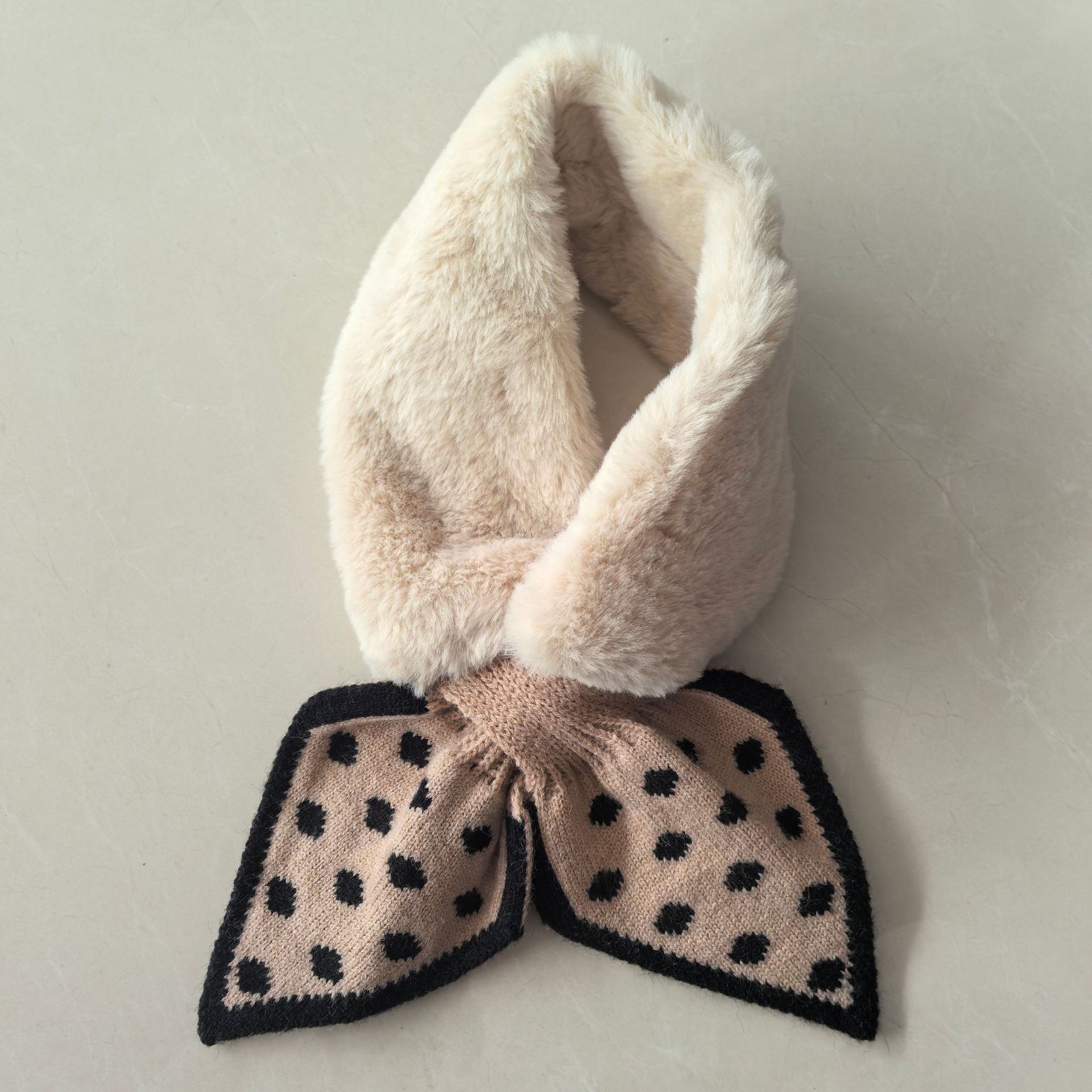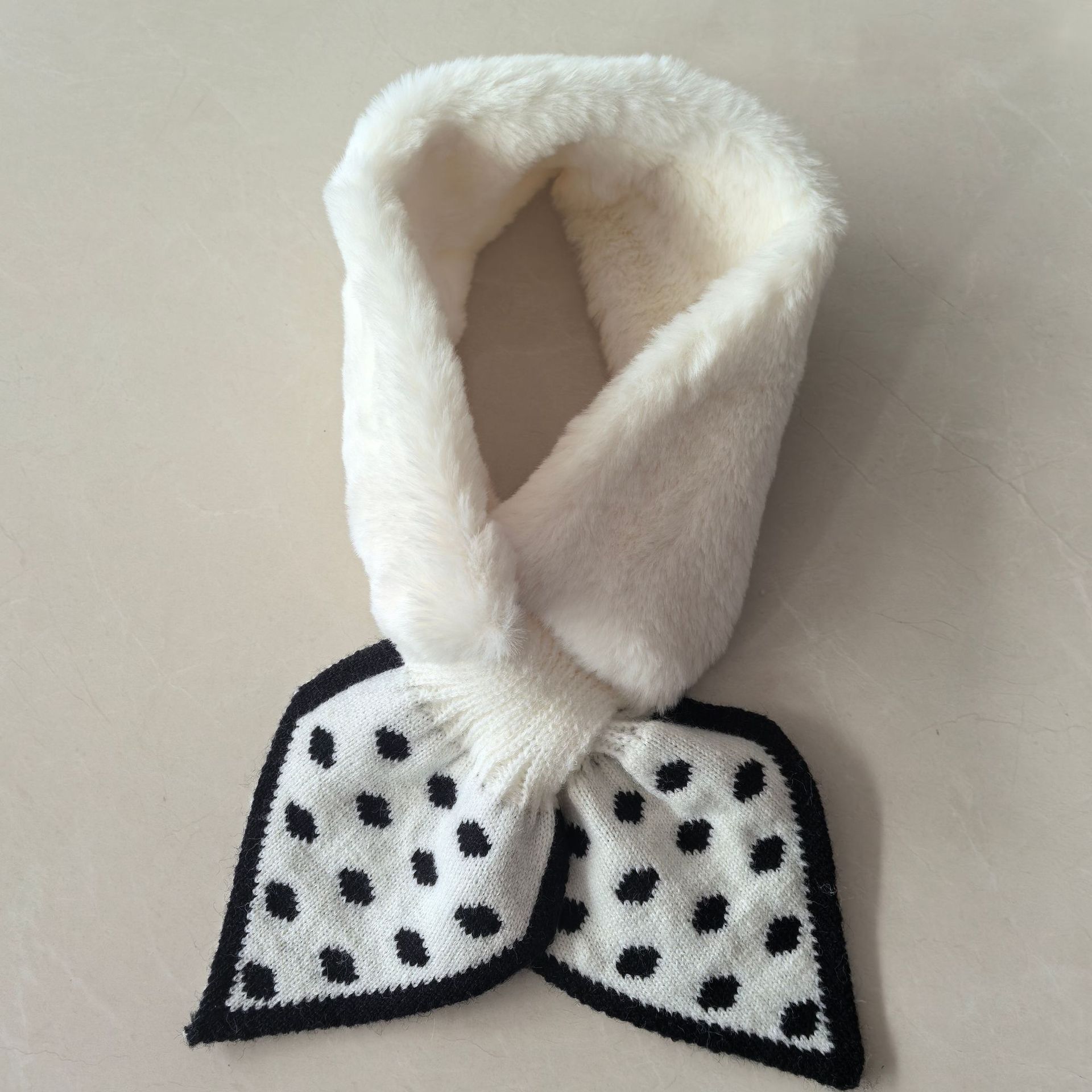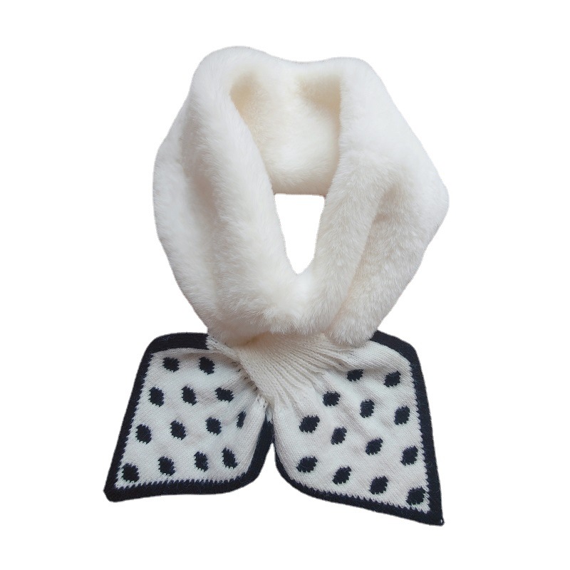 Шарф женский, зимний стиль, корейская версия, в горошек, плюшевый, милый, теплый, осенне-зимний, для защиты шеи, из искусственного кроличьего меха, в милом стиле.