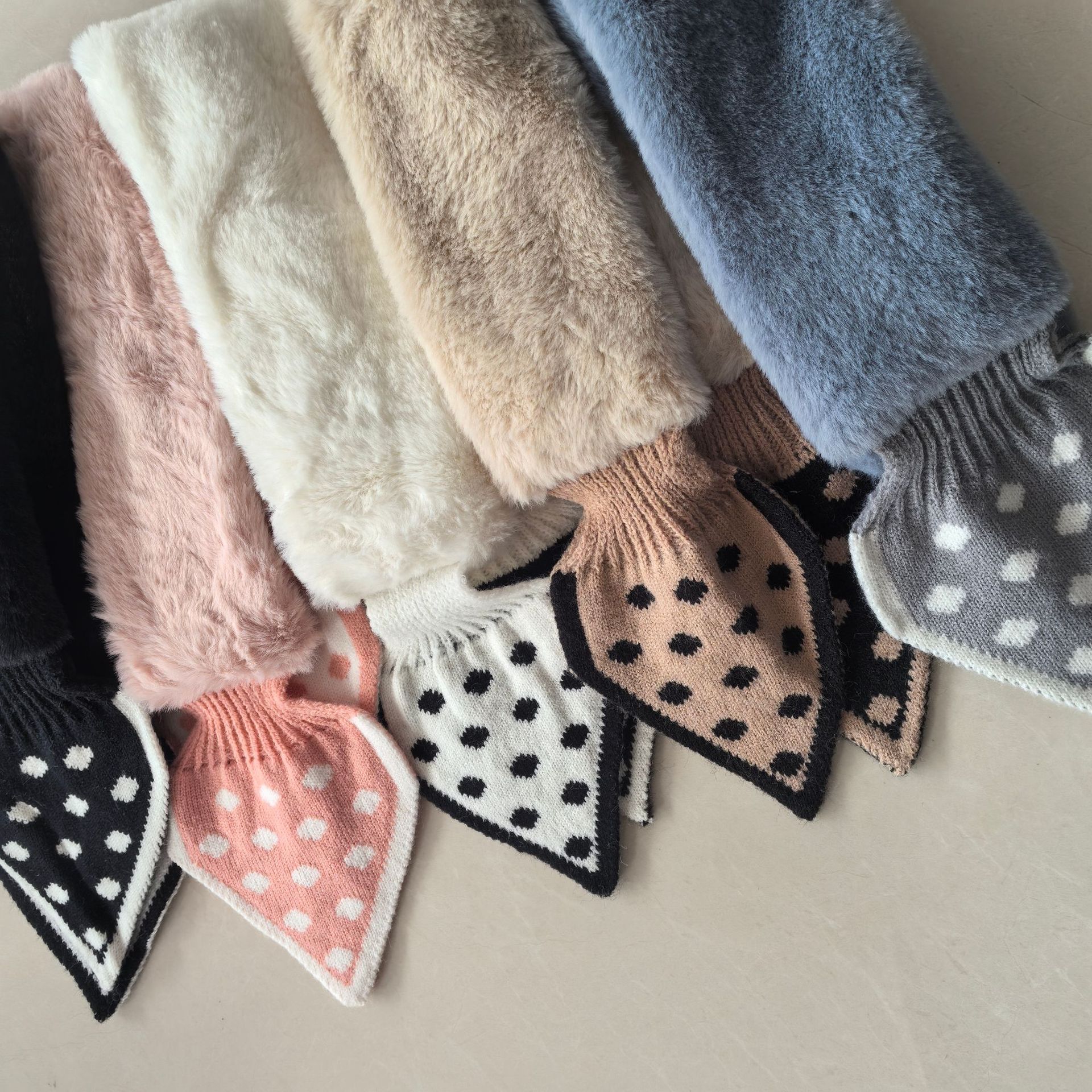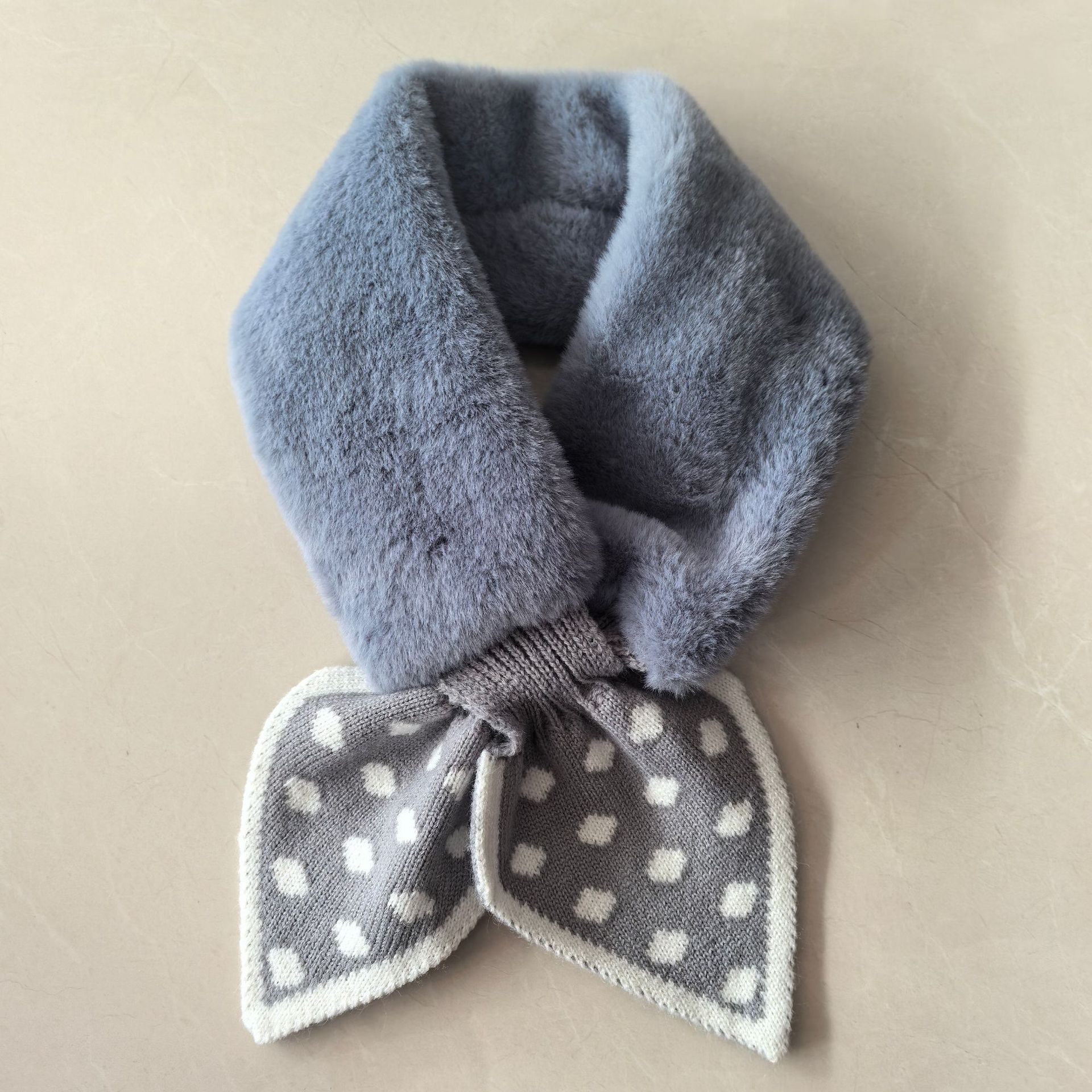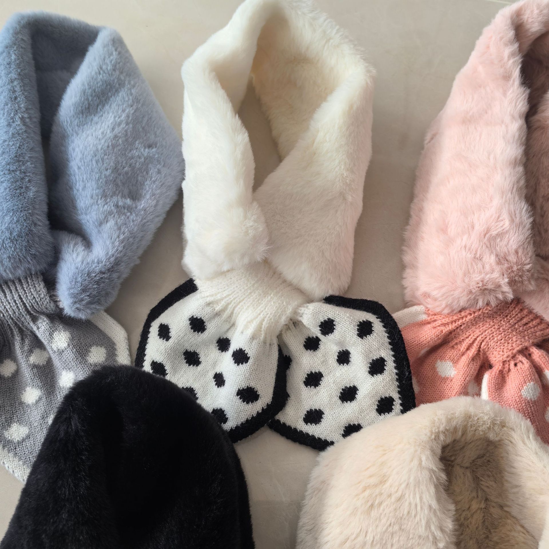 Шарф женский, зимний стиль, корейская версия, в горошек, плюшевый, милый, теплый, осенне-зимний, для защиты шеи, из искусственного кроличьего меха, в милом стиле.