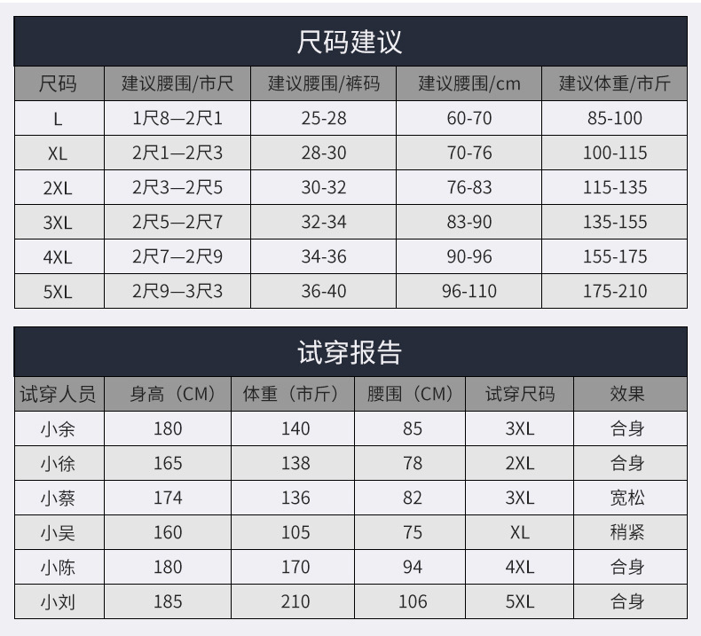 L (рекомендуемый вес 85-100 кг)-отказ от низкого качества; XL (рекомендуемый вес 100-115 кг)-Удобная подкладка; 2XL (рекомендуемый вес 115-135 кг)-Обновление плавательных очков; 3XL (рекомендуемый вес 135-155 кг)-Доступный набор; 4XL (рекомендуемый вес 155-175 кг)-не одобряйте; 5XL (рекомендуемый вес 175-210 кг)-высокая цена
