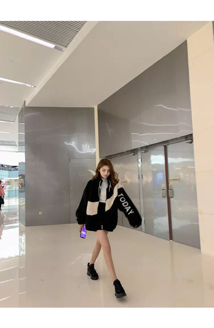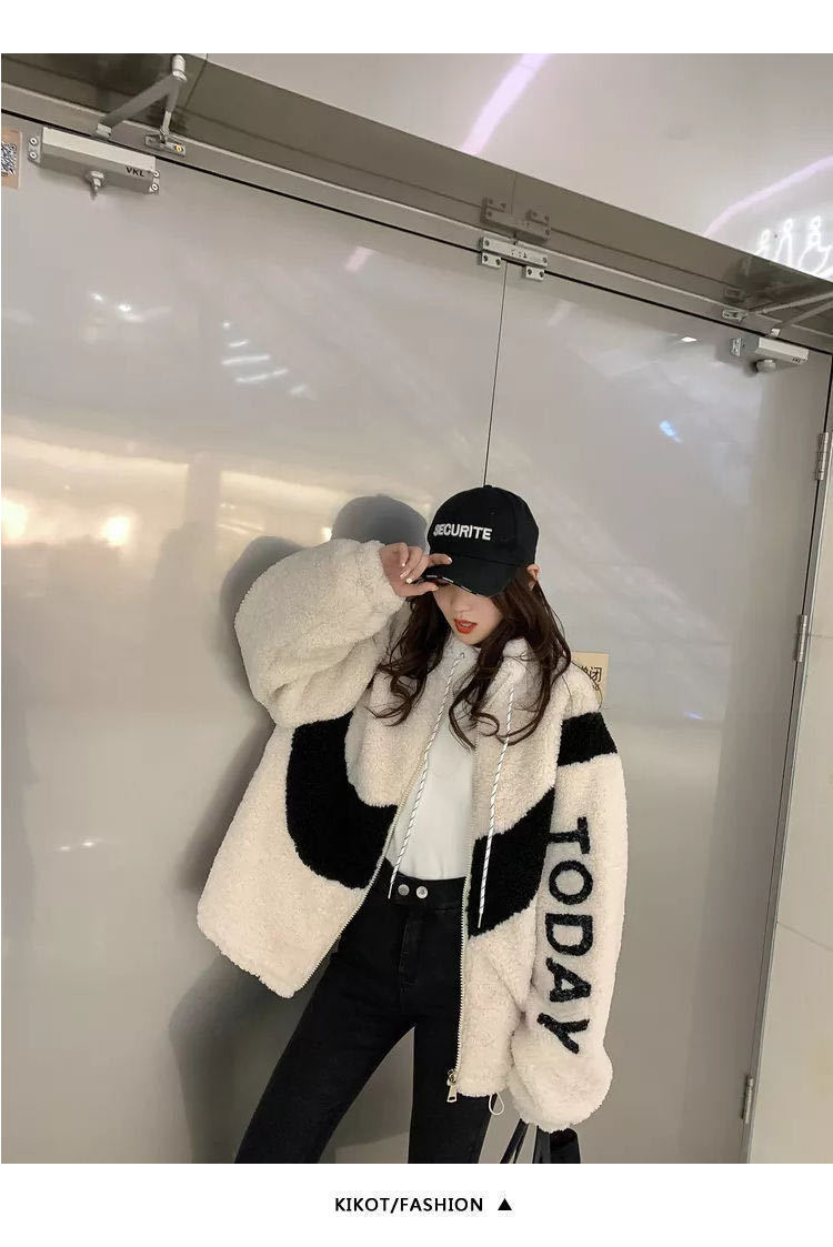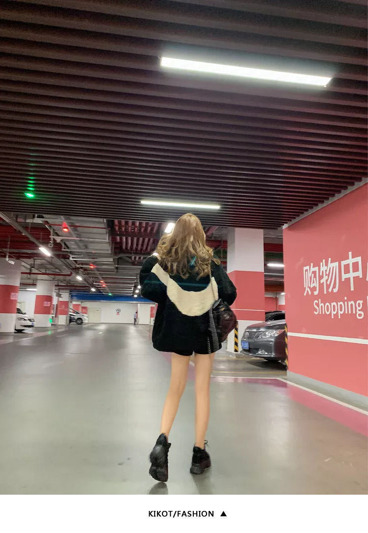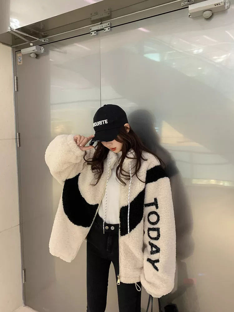 Новинка Осень-зима 2021, куртка с хлопковой подкладкой из искусственной овечьей шерсти, женский свободный бейсбольный костюм в Корейском стиле, свитер в гонконгском стиле, кардиган на молнии