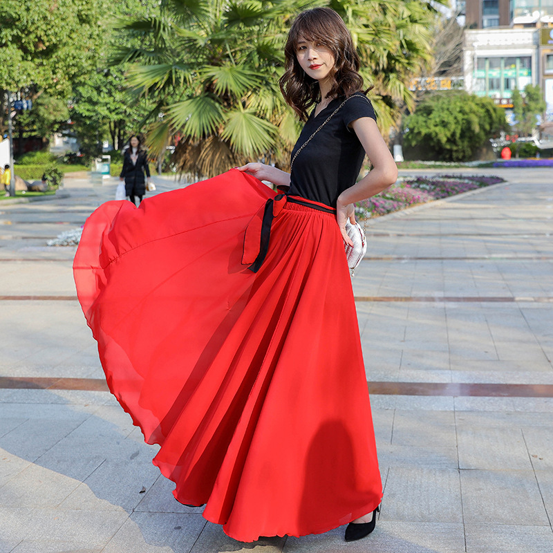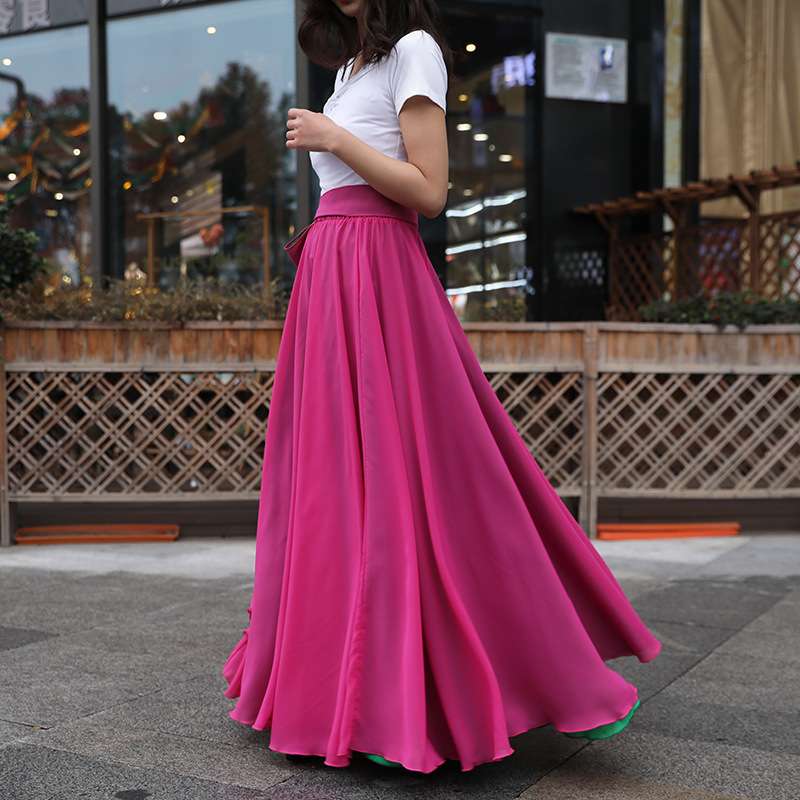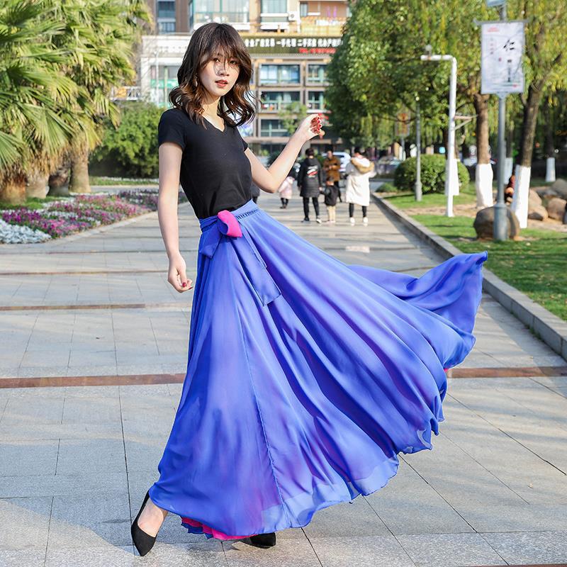 Двухсторонняя большая юбка-маятник 2023 новая темпераментная шифоновая юбка с высокой талией