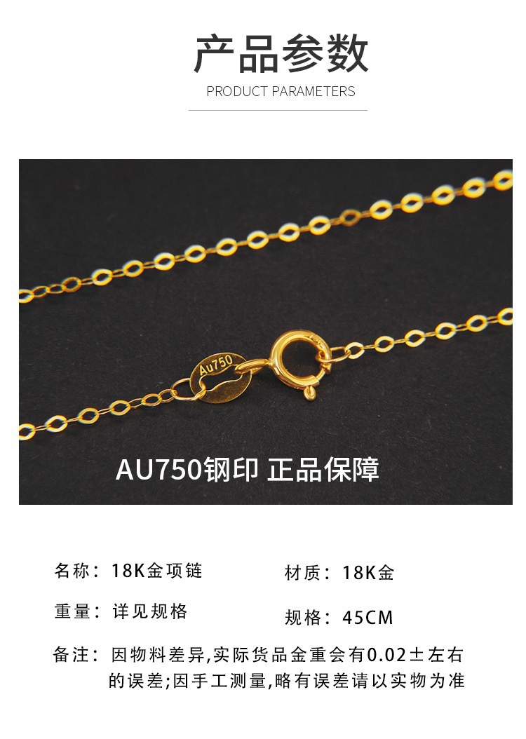 Ювелирные изделия Qianxin: золотое колье 18 карат, женские аксессуары, розовое золото au750, блестящая цепочка O-образной формы, оптовая продажа золотых изделий для прямых трансляций.