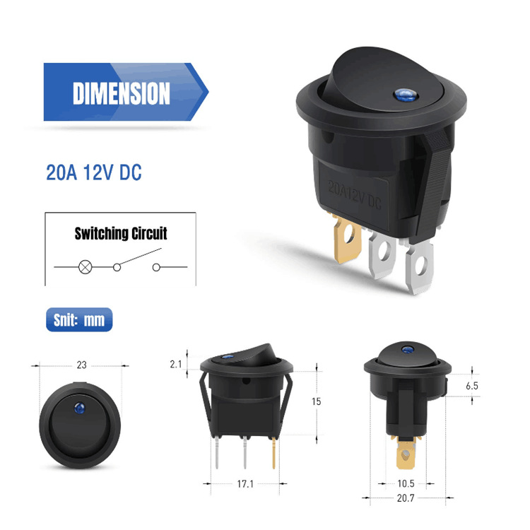 12V автомобильный кулисный переключатель круглый Кулисный переключатель KCD1 12V кошачий глаз красный с подсветкой 3 фута 2 передачи 20A