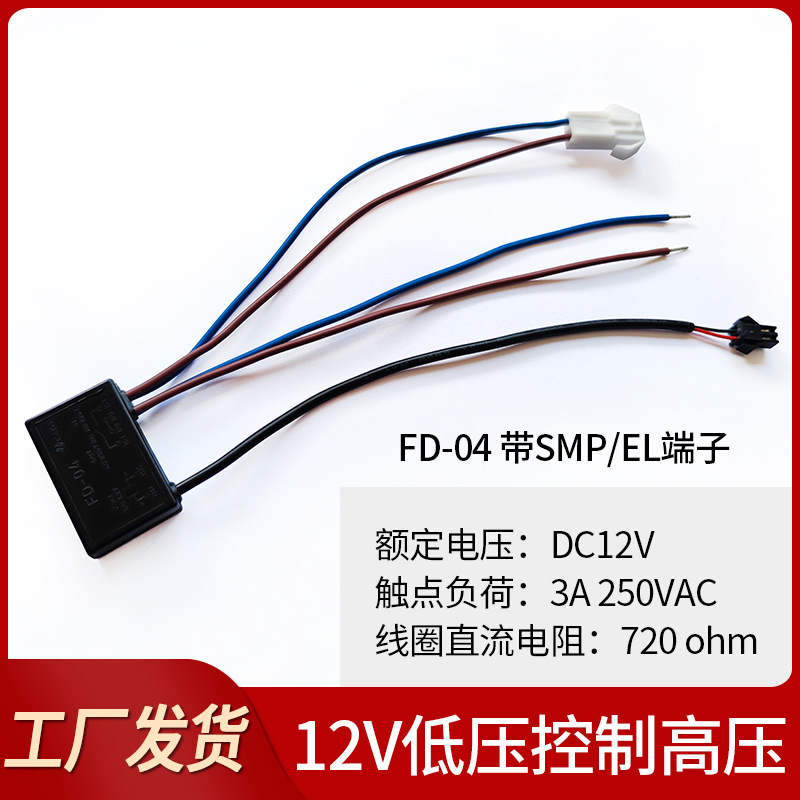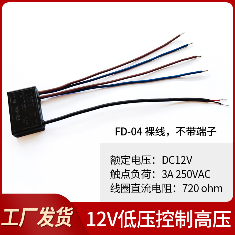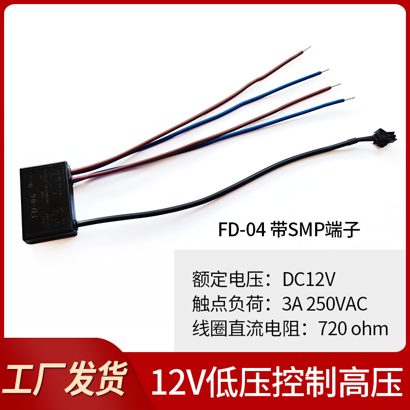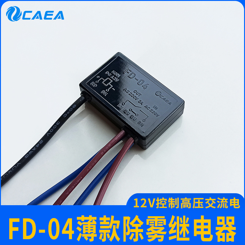 FD-04低压防雾继电器主要用于卫浴镜产品上,实现低压直流控制高压交流市电开关的功能。如市电照明灯或浴室镜的防雾膜开关控制。也可用于其它需要低压直流来控制高压交流电的场合。具有体积小巧,开关负荷大,接线方便的优点。