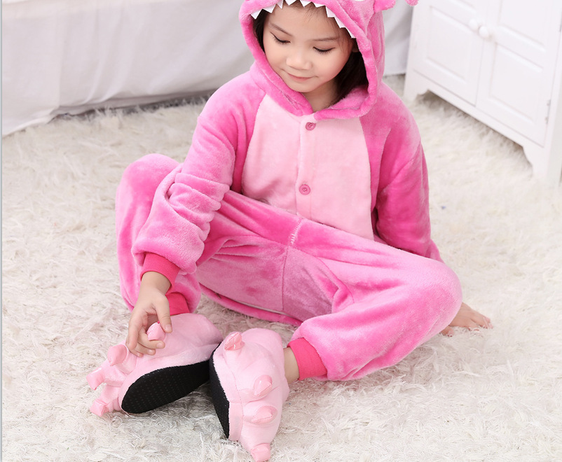 Осенне-зимняя детская цельная Пижама с динозаврами, фланелевая Домашняя одежда с длинными рукавами и мультяшными животными для мальчиков и девочек