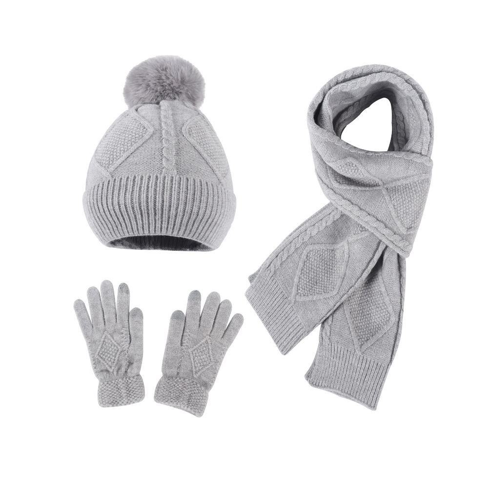 2021 трансграничная Европейская и американская Женская шерстяная вязаная шапка-шарф перчатки из трех частей модная теплая шерстяная шапка костюм