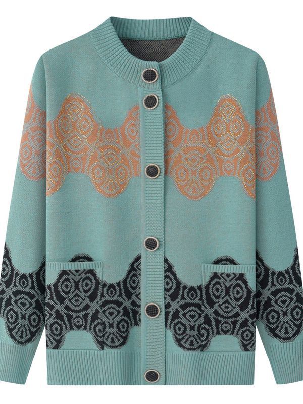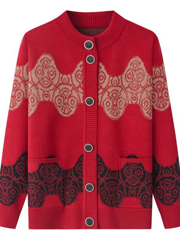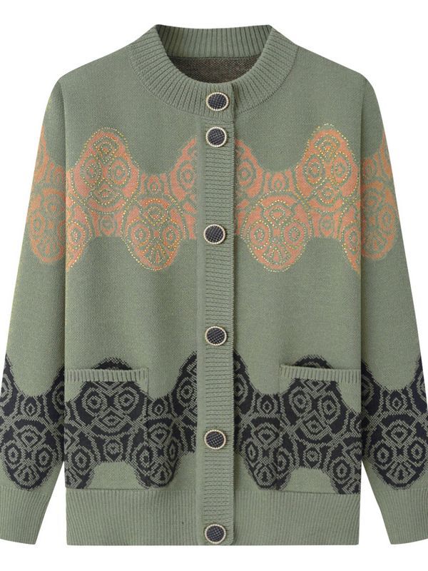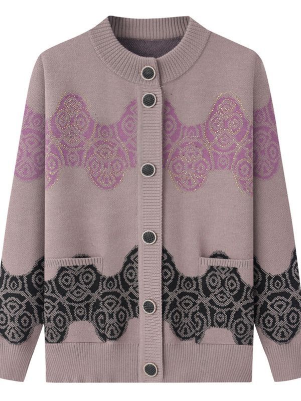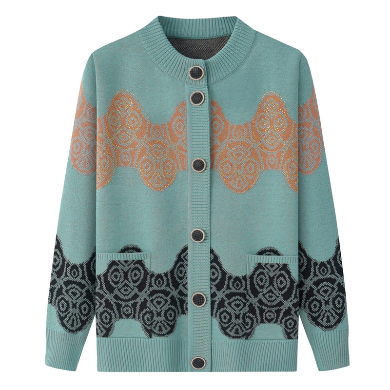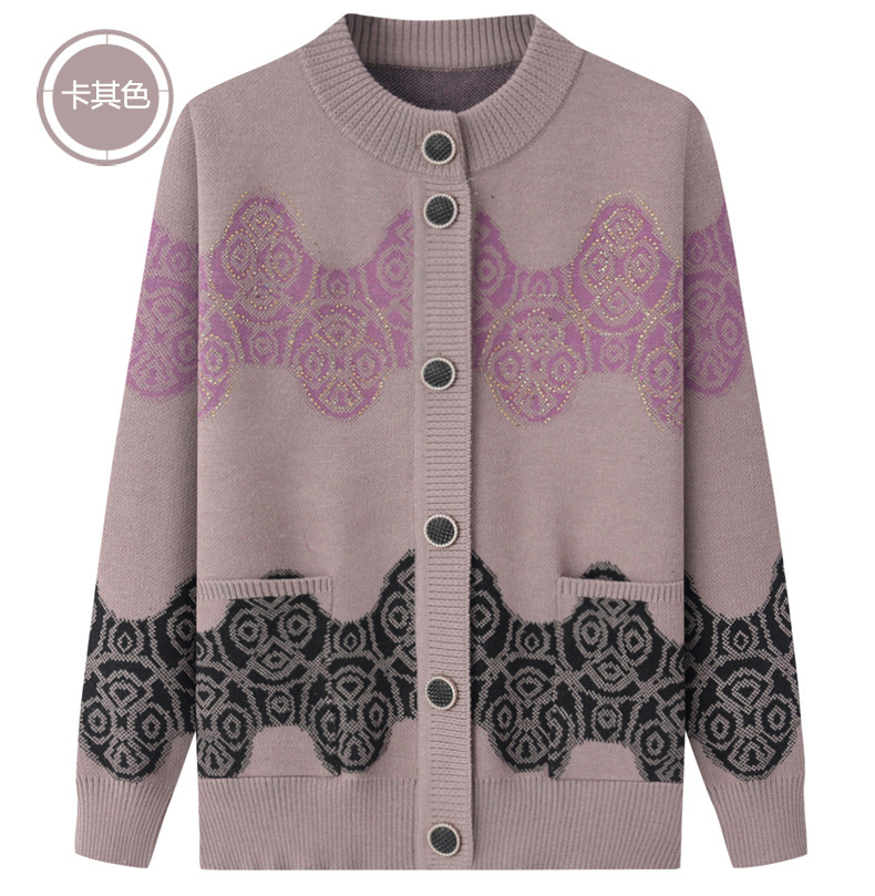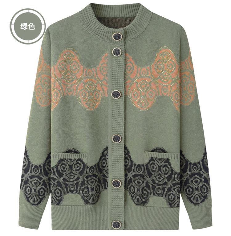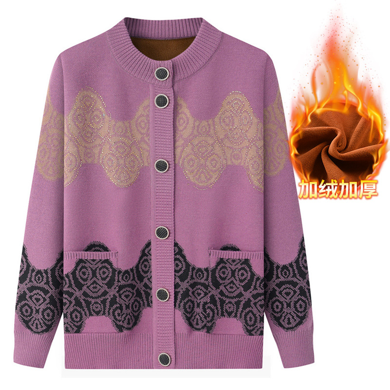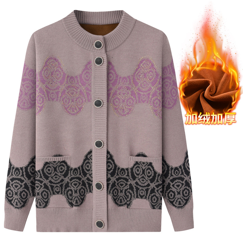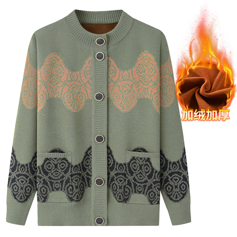 Женский осенне-зимний свитер для бабушки, пальто на флисовой подкладке, утепленный трикотаж для мамы, кардиган, весенний Топ для средних лет