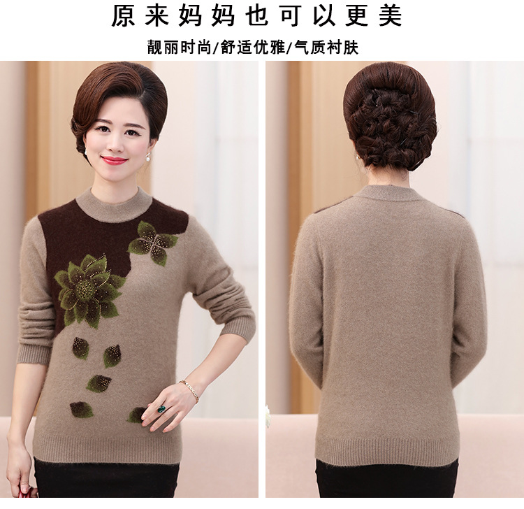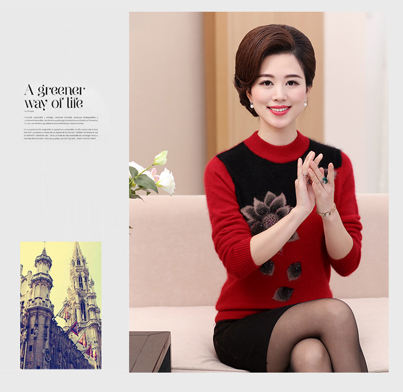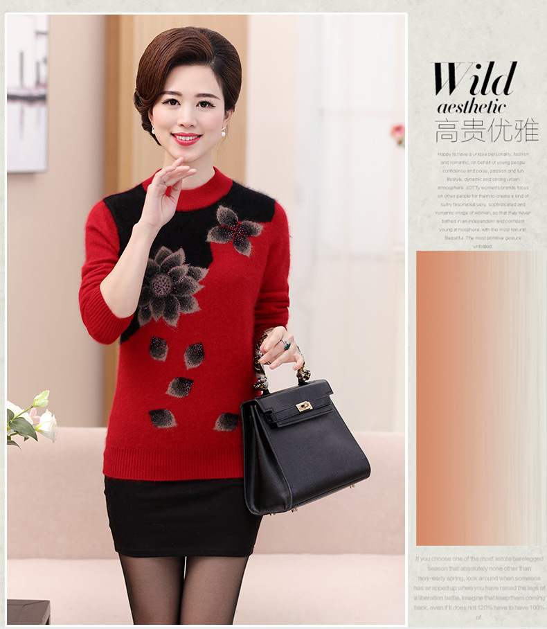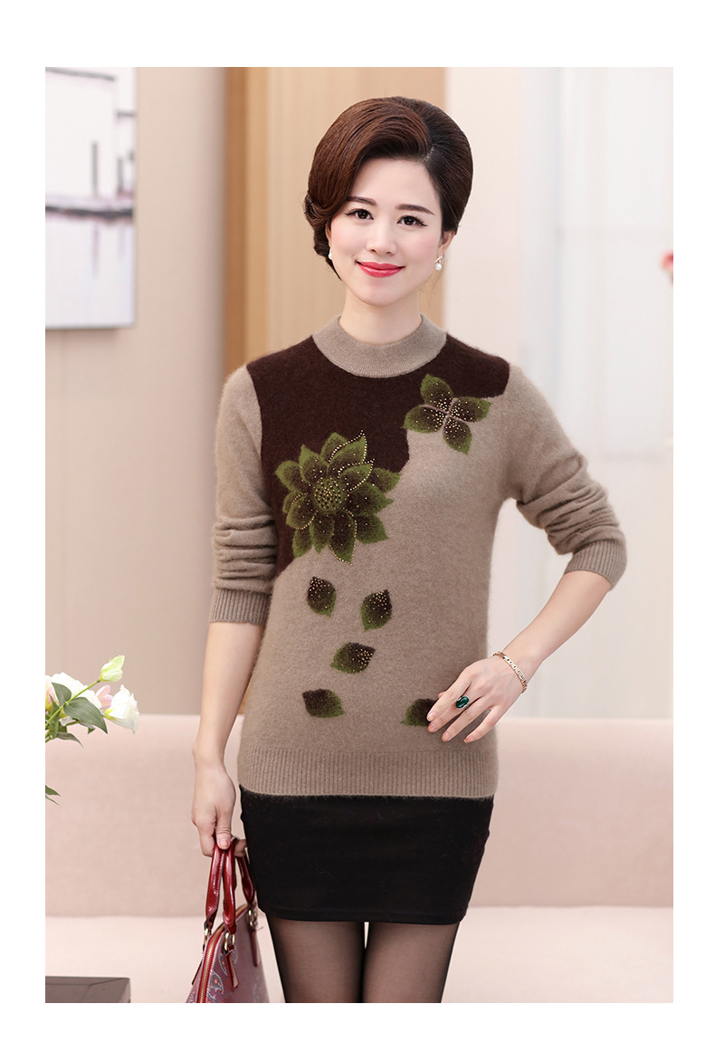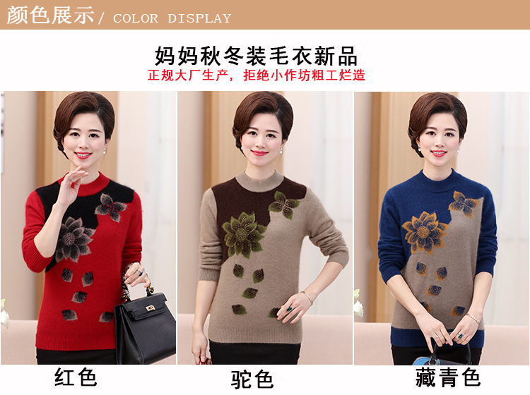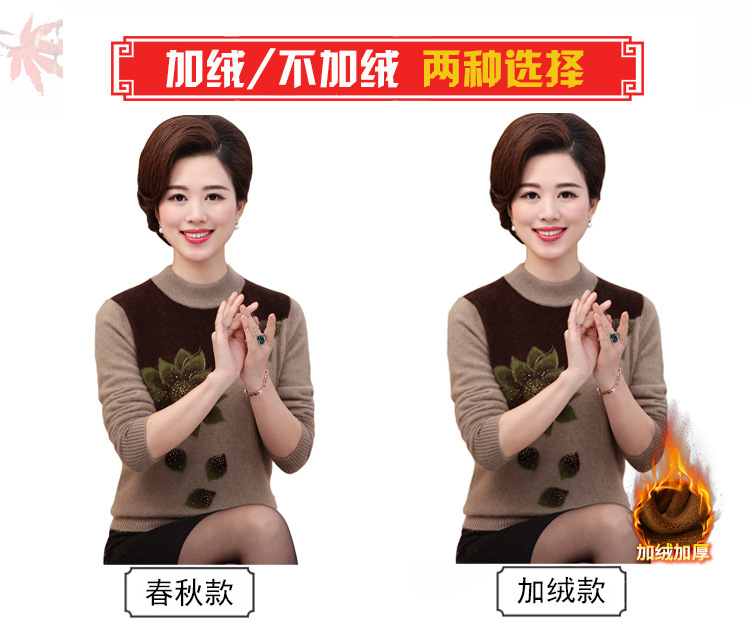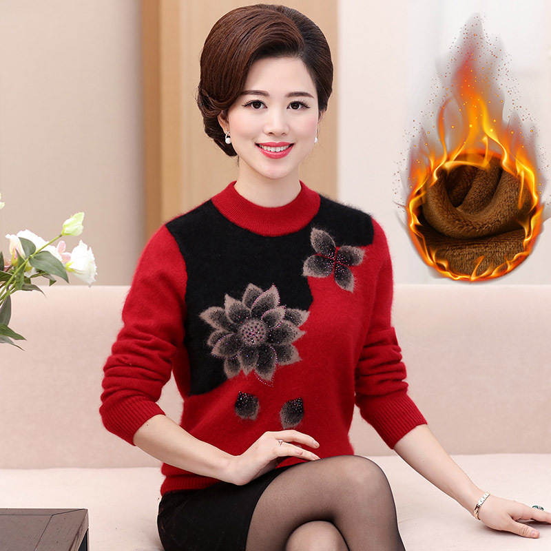 Свитер для средних лет, осенне-зимний женский утепленный вязаный свитер на флисовой подкладке, свободная Базовая рубашка для мам больших размеров, топ для средних лет