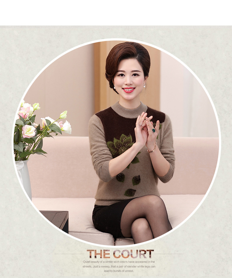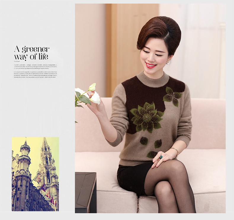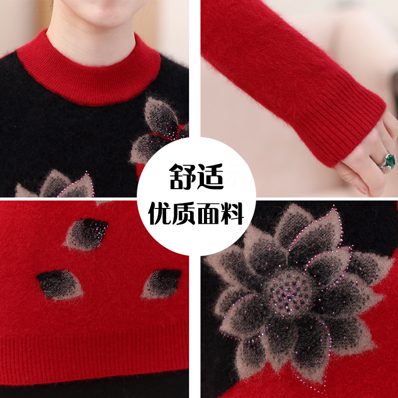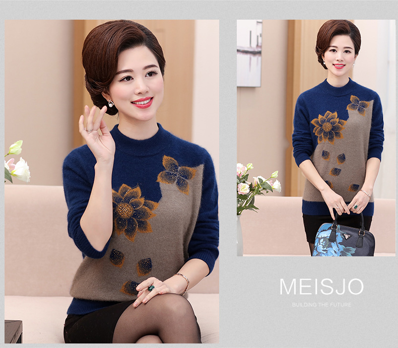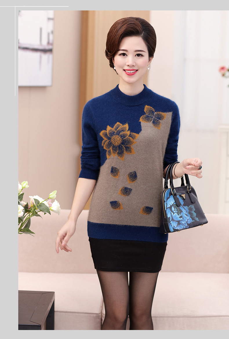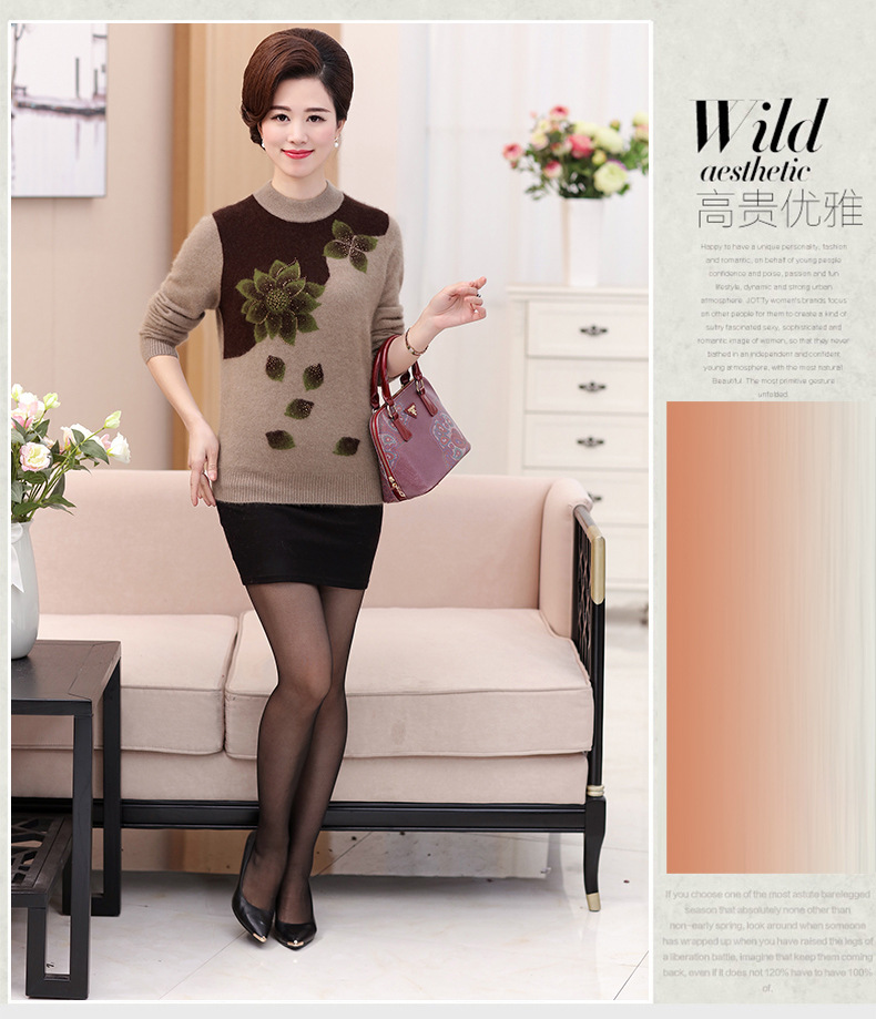 Свитер для средних лет, осенне-зимний женский утепленный вязаный свитер на флисовой подкладке, свободная Базовая рубашка для мам больших размеров, топ для средних лет