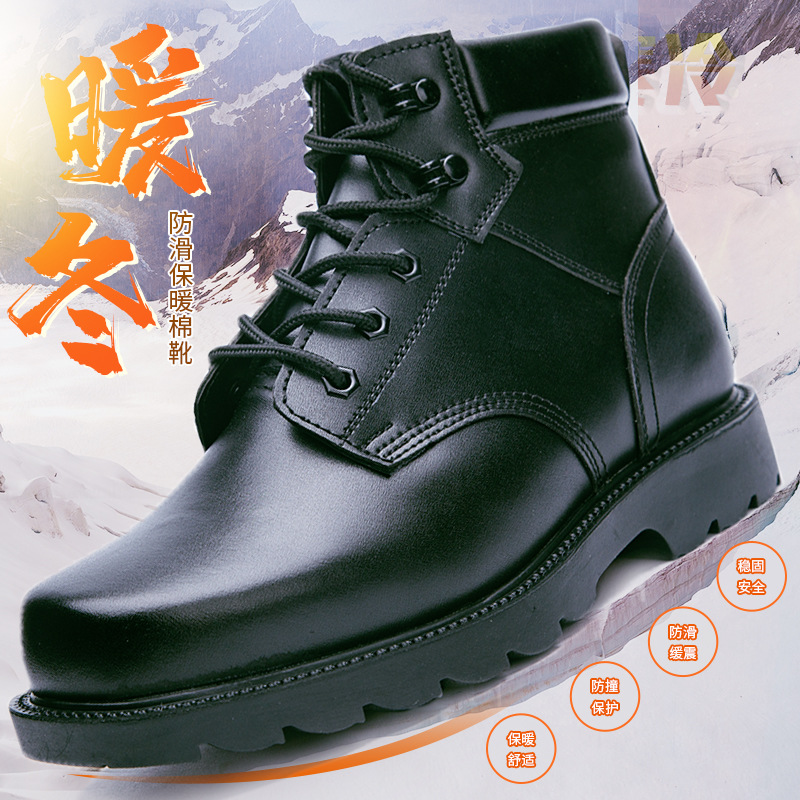 Мужские зимние шерстяные сапоги, утепленные флисом, большие хлопковые сапоги для снега, повседневные кожаные хлопковые ботинки на шнуровке, теплые сапоги для защиты от холода в северо-восточных регионах.