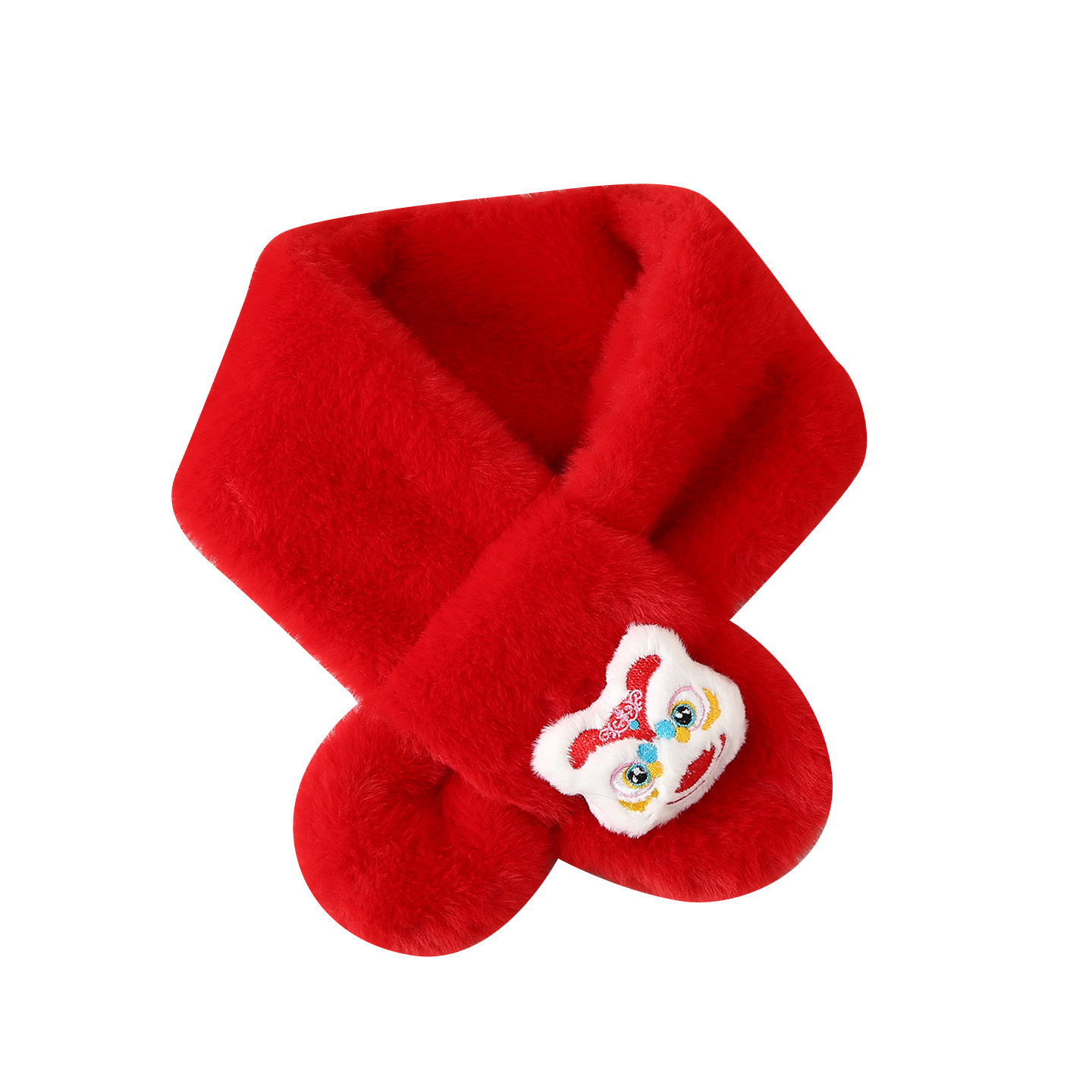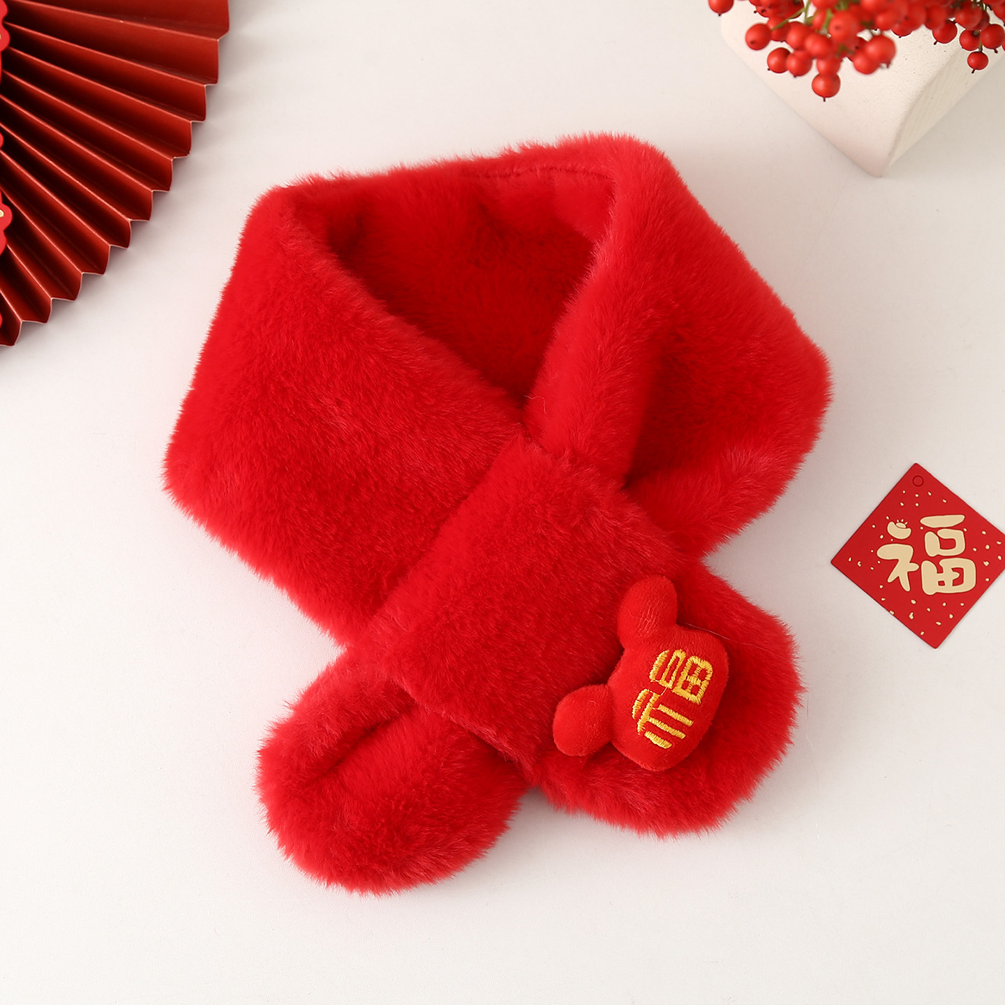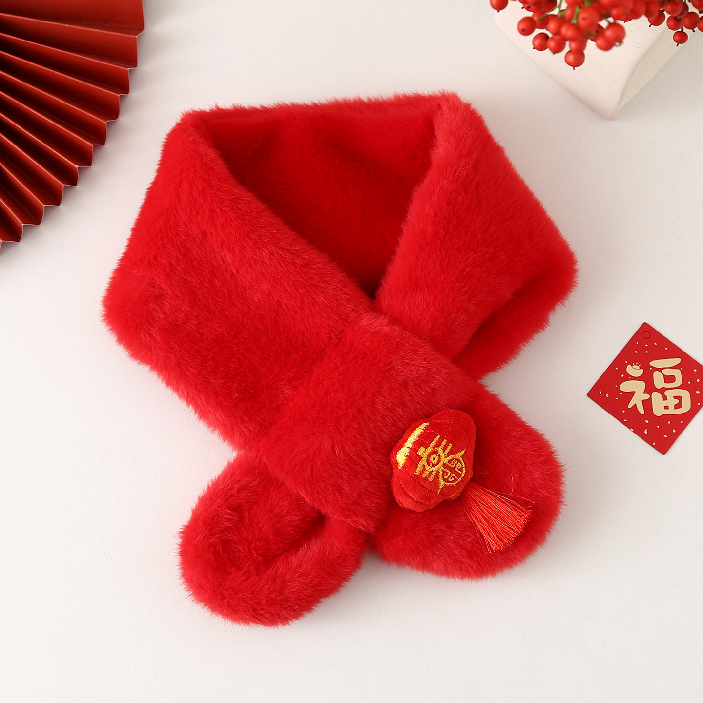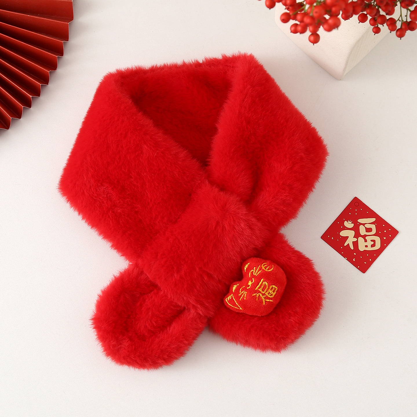 Новогодний детский шарф, красный, ярко-красный, из искусственного кроличьего меха, осенне-зимний, для малышей, на год Кролика, праздничный, для защиты шеи, подарок, оптом от производителя
