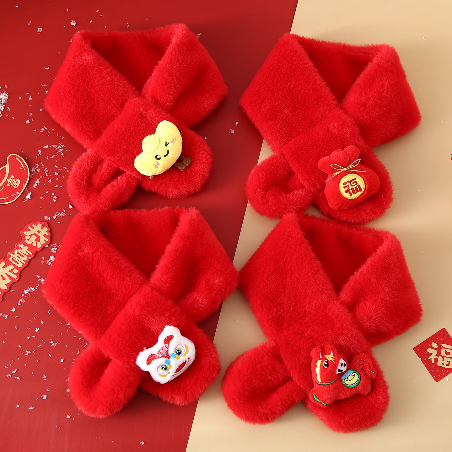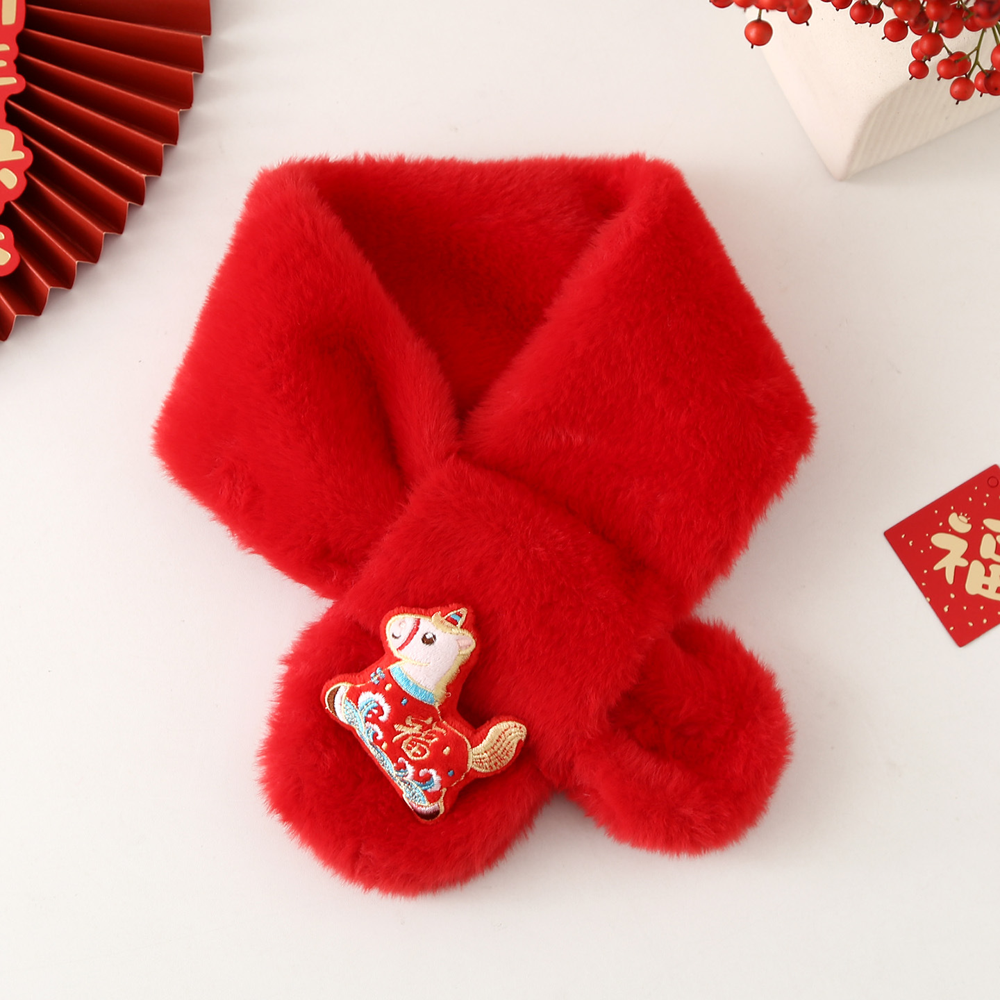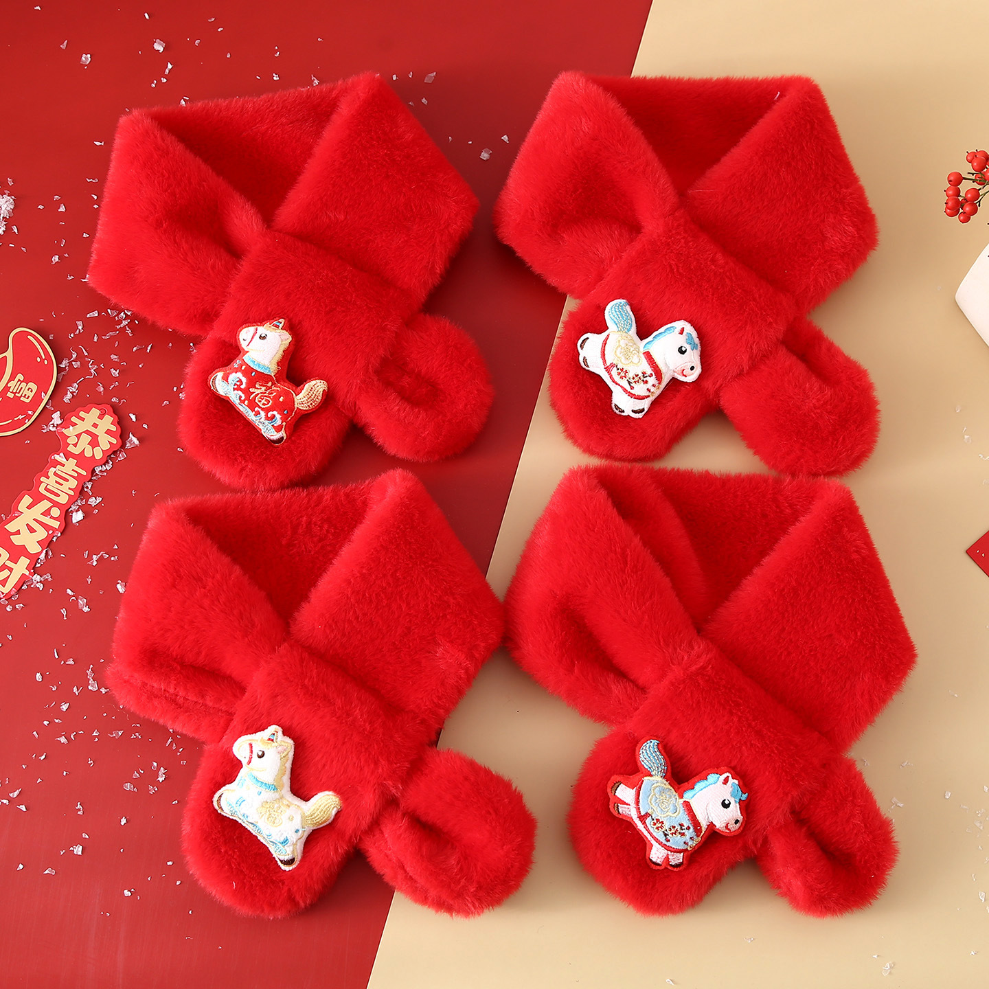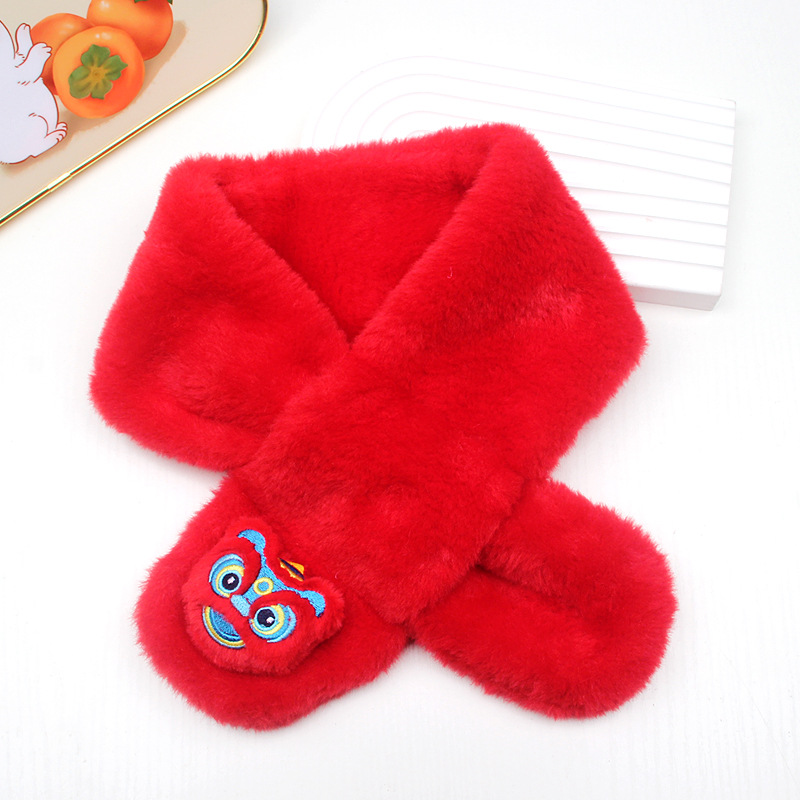 Новогодний детский шарф, красный, ярко-красный, из искусственного кроличьего меха, осенне-зимний, для малышей, на год Кролика, праздничный, для защиты шеи, подарок, оптом от производителя
