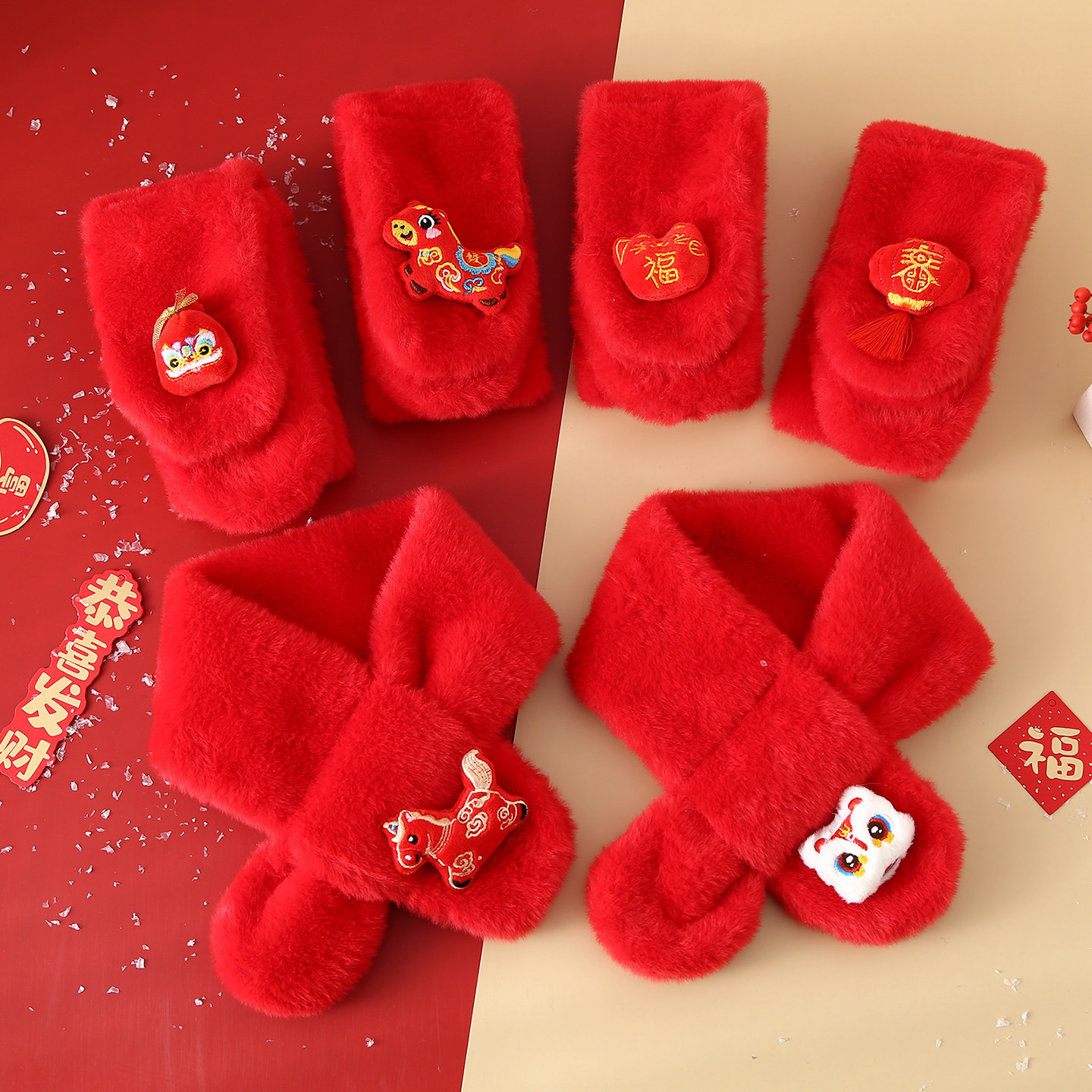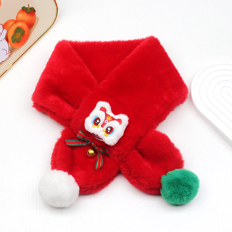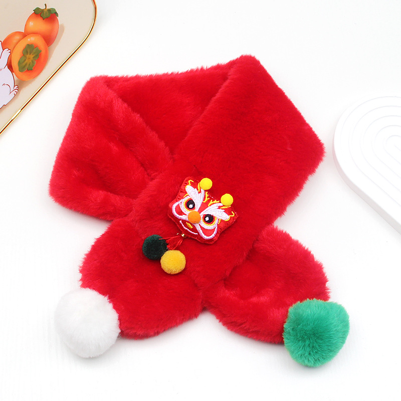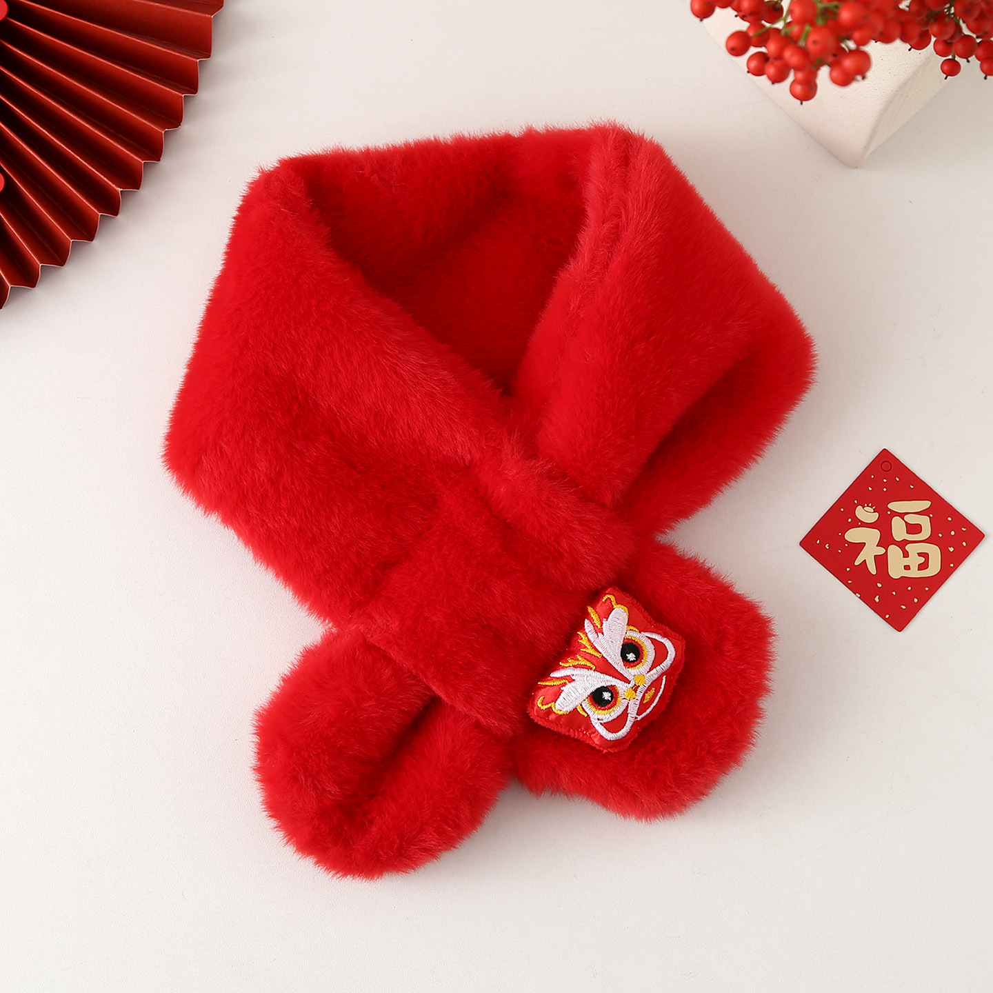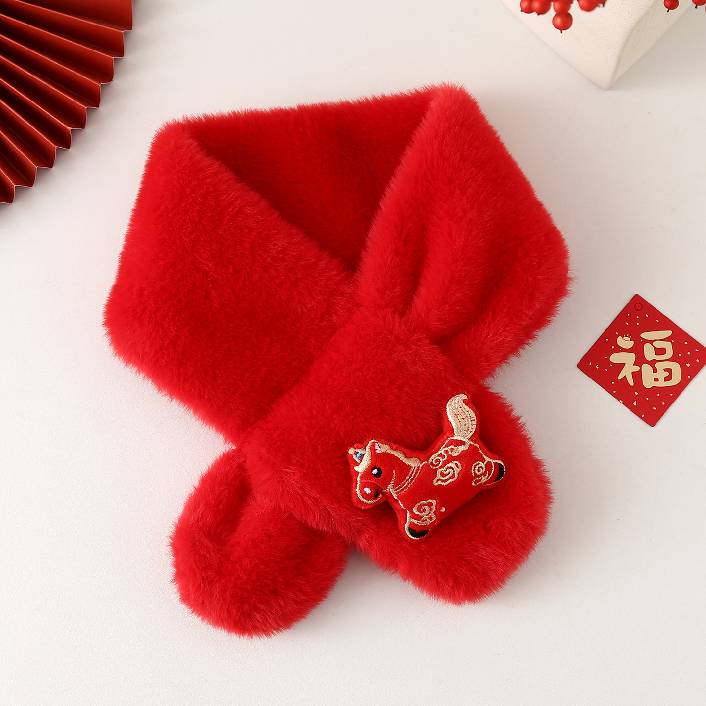 Новогодний детский шарф, красный, ярко-красный, из искусственного кроличьего меха, осенне-зимний, для малышей, на год Кролика, праздничный, для защиты шеи, подарок, оптом от производителя