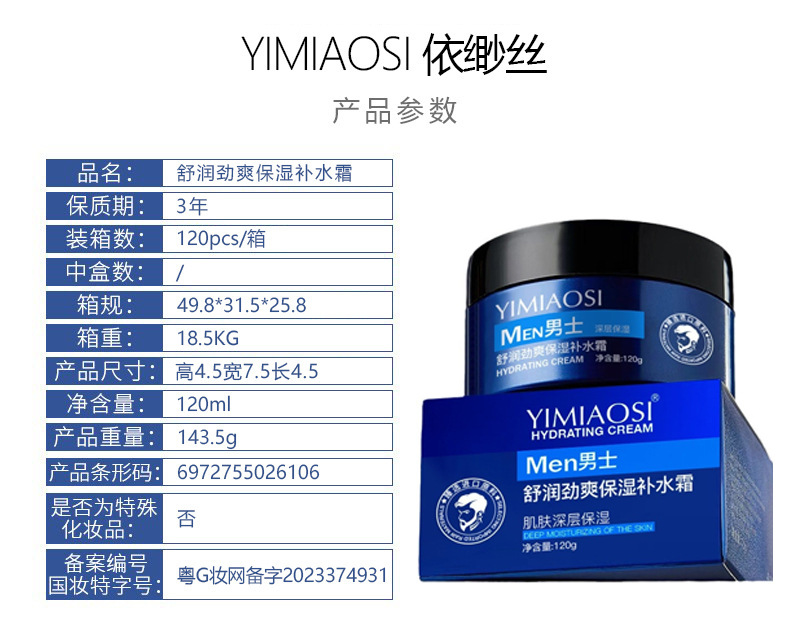 YIMIAOSI Мужской Увлажняющий крем для лица 120g Сущность для лица Улучшает сухость кожи Увлажняющий крем для лица
