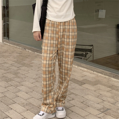 Трансграничные широкие брюки в клетку с флисовой подкладкой для внешней торговли, женские свободные стройнящие зимние утепленные брюки из овечьего флиса, повседневные теплые брюки с высокой талией