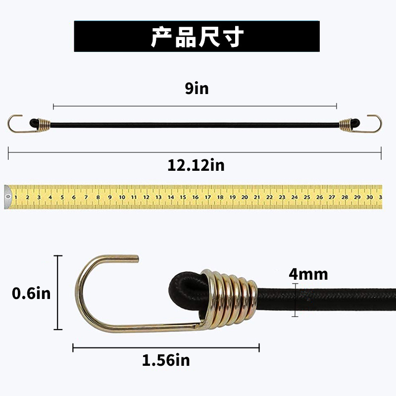Мини-лента для упаковки из латекса и металла, 25 см, с крючком, для крепления грузов, с высокой эластичностью