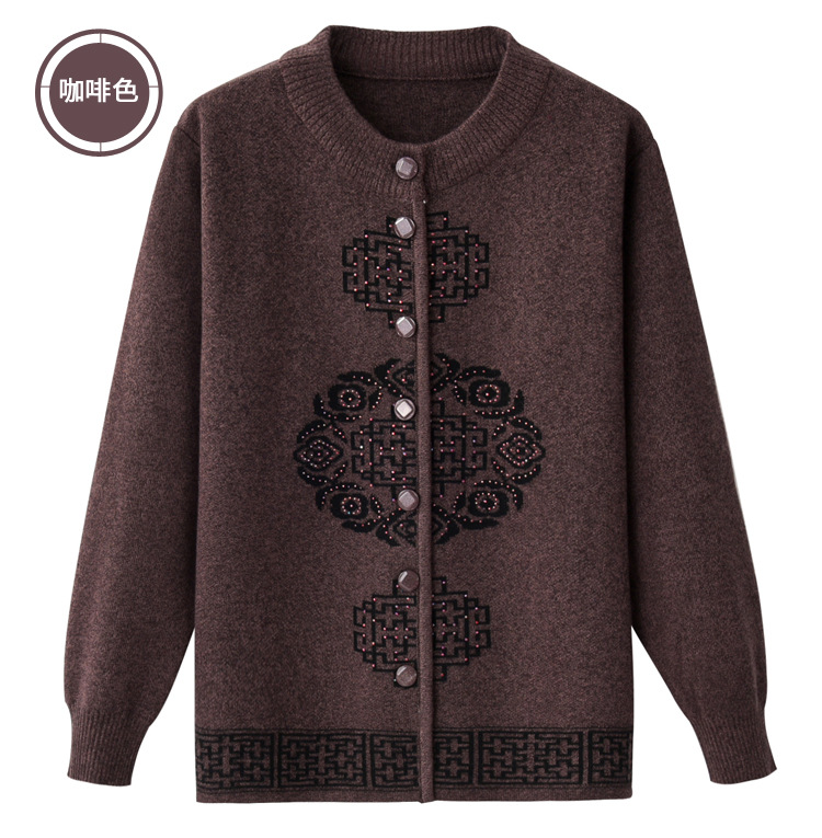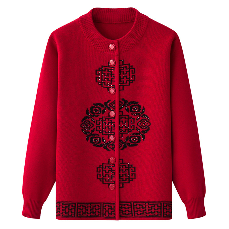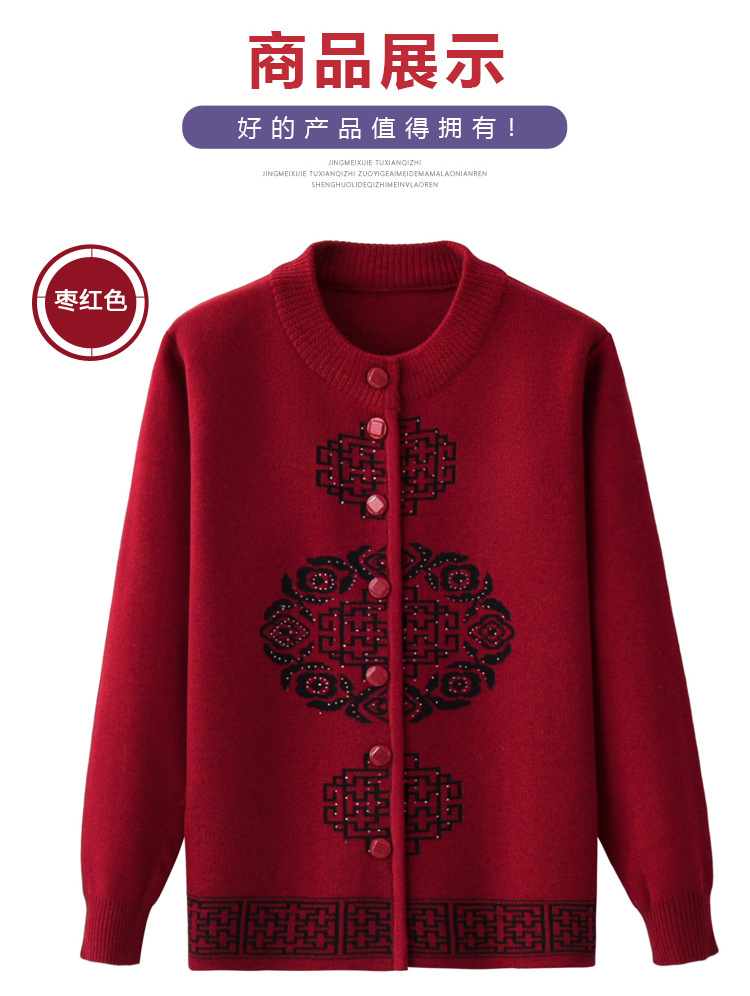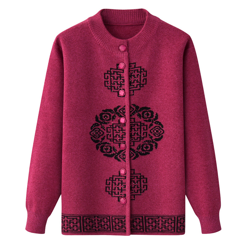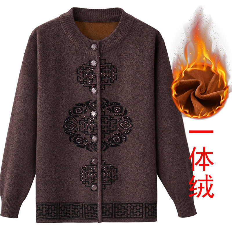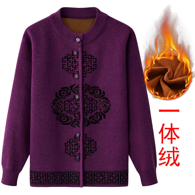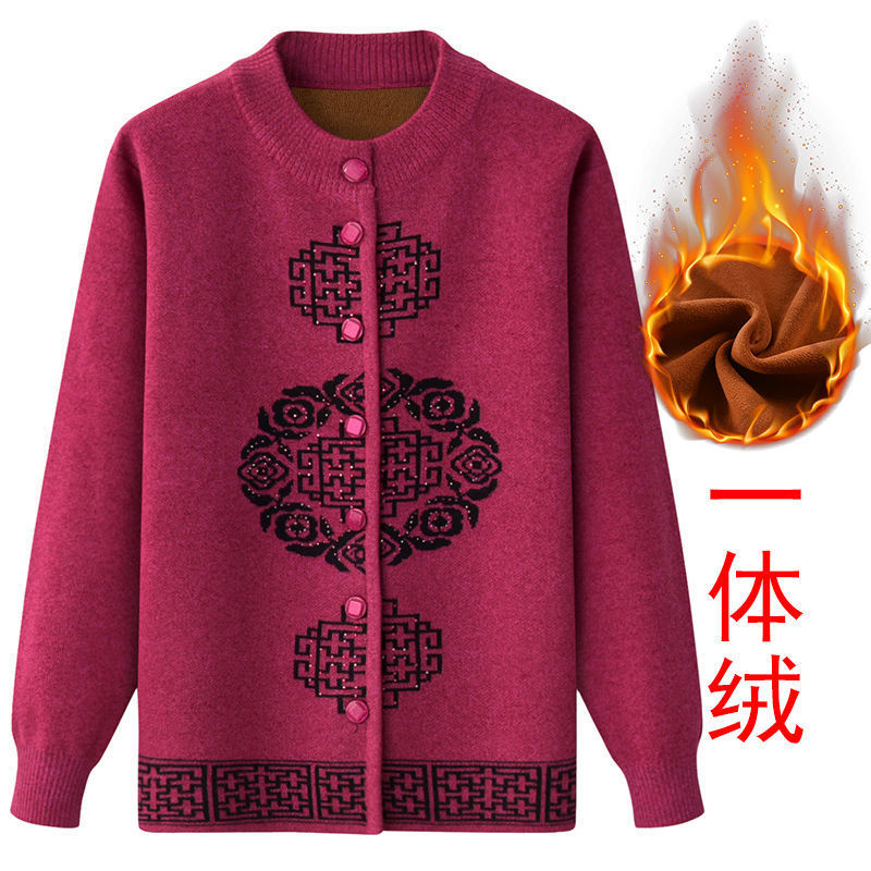 Женская осенне-зимняя одежда для пожилых людей, утолщенный свитер на флисовой подкладке, вязаный свитер для матери, весенняя одежда, платье для бабушки и бабушки, кардиган