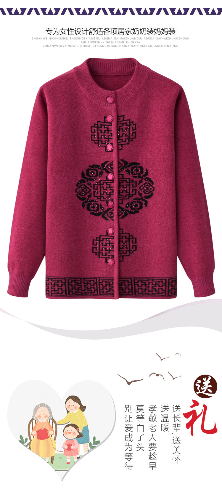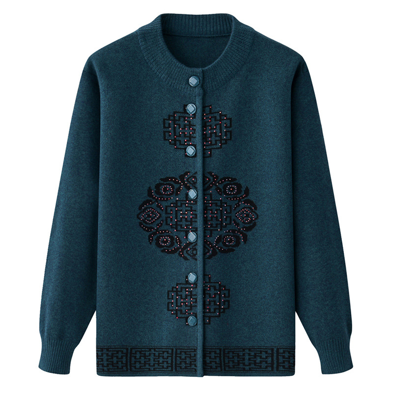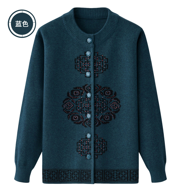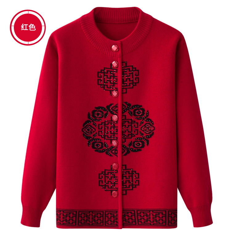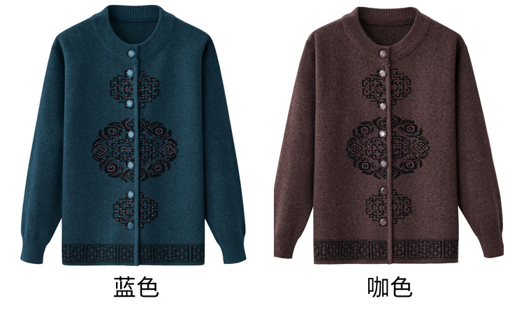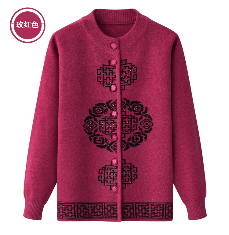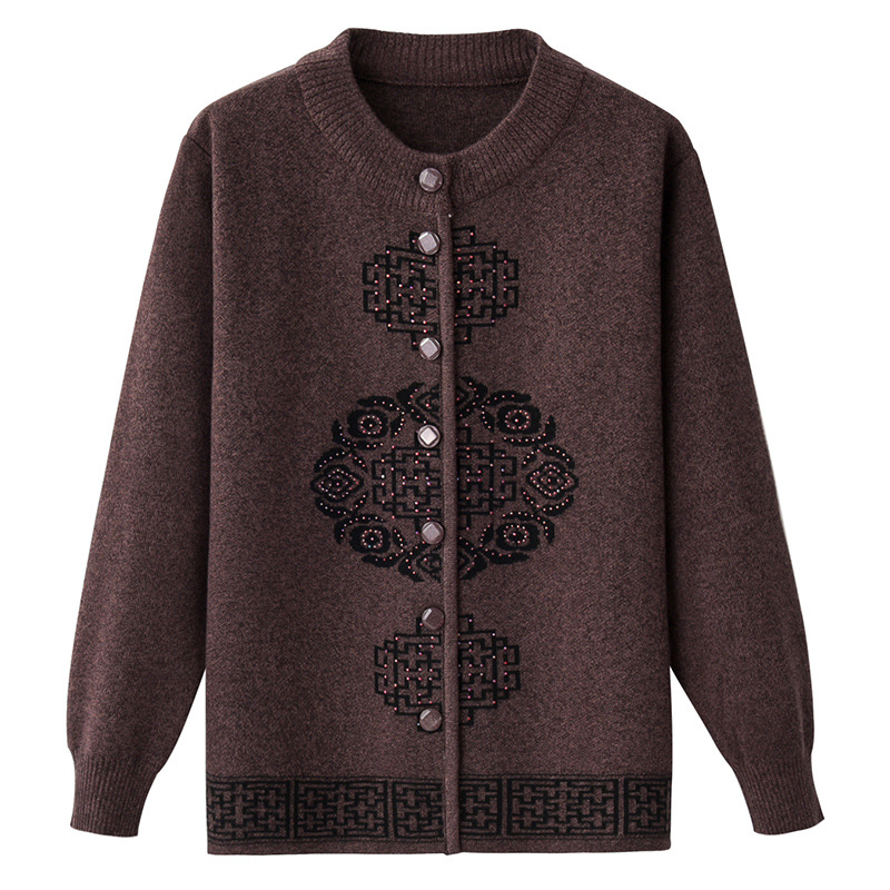 Женская осенне-зимняя одежда для пожилых людей, утолщенный свитер на флисовой подкладке, вязаный свитер для матери, весенняя одежда, платье для бабушки и бабушки, кардиган