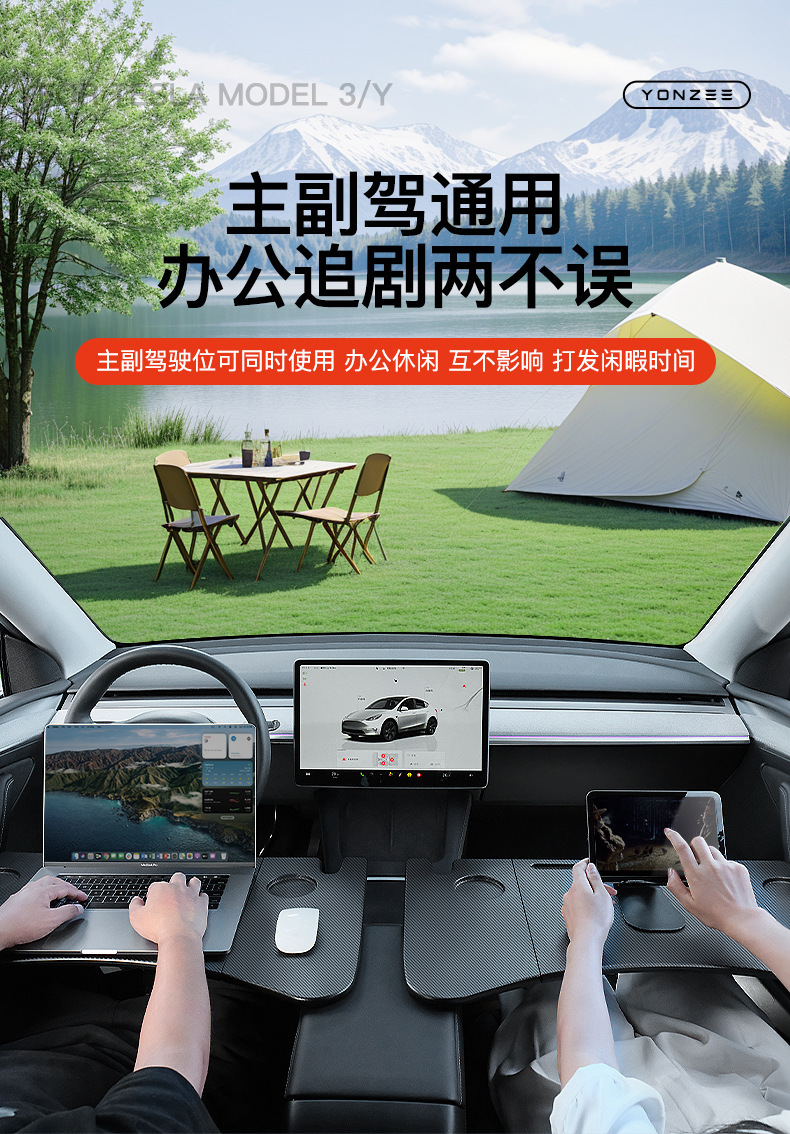 Полный ассортимент складных столиков для кемпинга в автомобиле, совместимых с моделями Y/3/YL; Полный ассортимент складных столиков для кемпинга в автомобиле Model Y/3/YL [2 шт. в комплекте]; Столик на рулевое колесо для всех моделей Y/3/YL [мягкая резина, черный]; Полный ассортимент столиков для руля моделей Y/3/YL [мягкая резина, черно-красный]