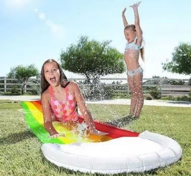 产品介绍:两边有喷水功能,产品不需要充气,连接水管后,水就会不断喷出来, 需要一直连接着水龙头才可以。建议在草地上使用