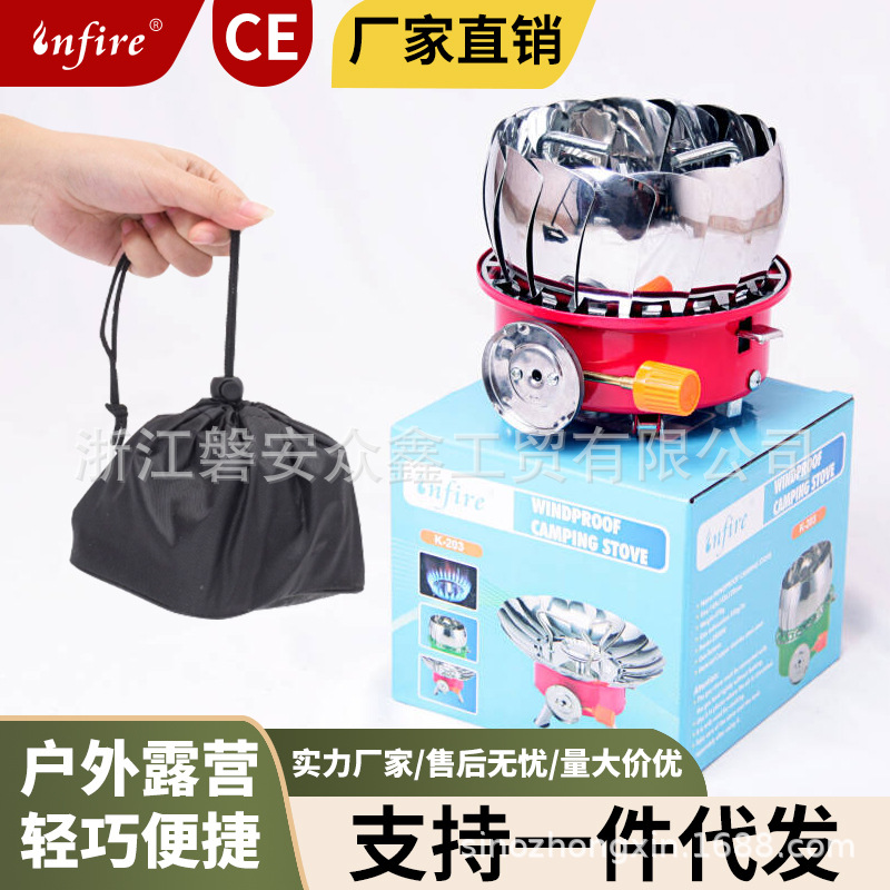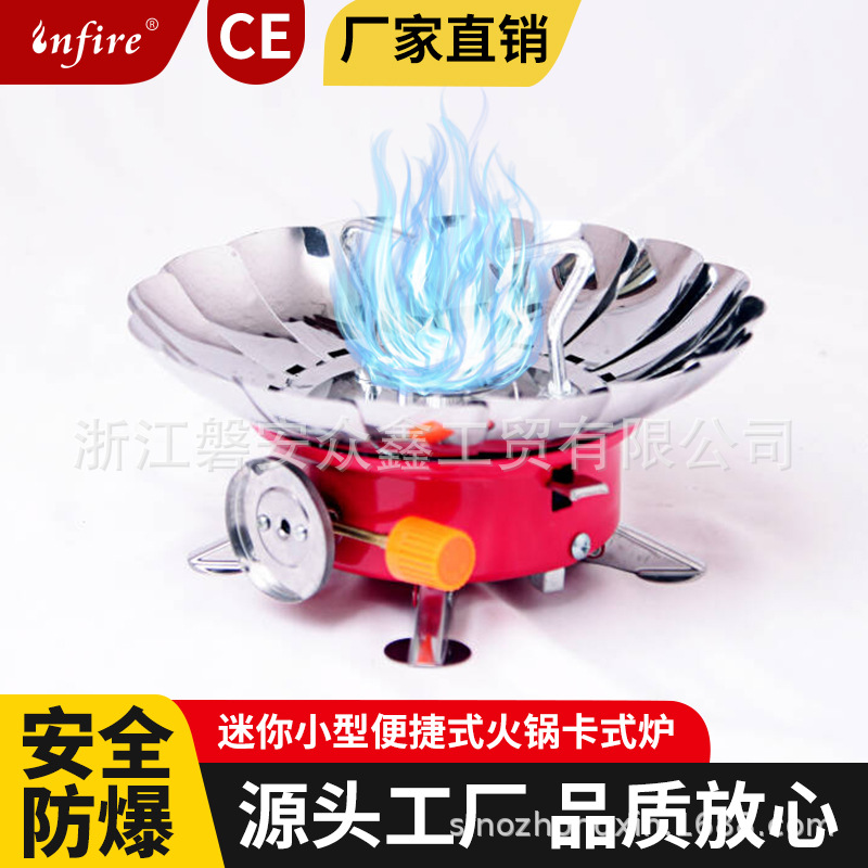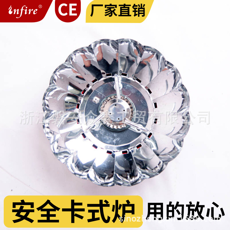 【产品说明】:防风炉头:挡风板可象莲花般打开或收起,设计巧妙,有防风、集热的效果。携带方便:撑脚,挡风板可收缩,收起后装在一个黑色的尼龙包包内。