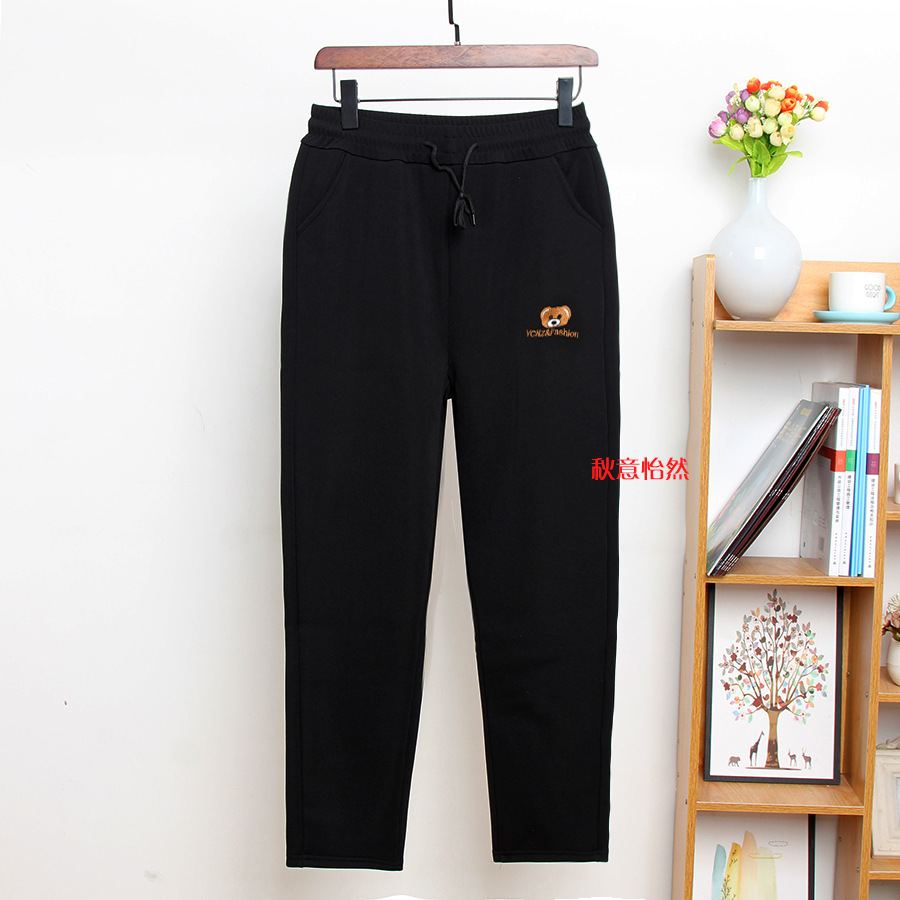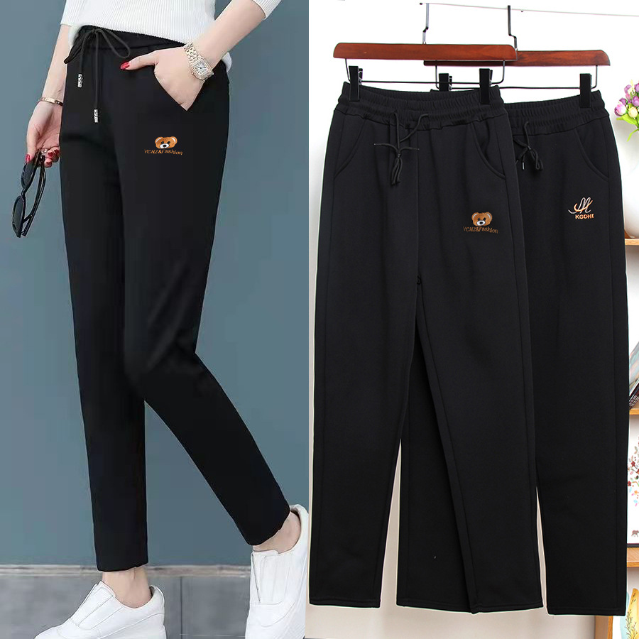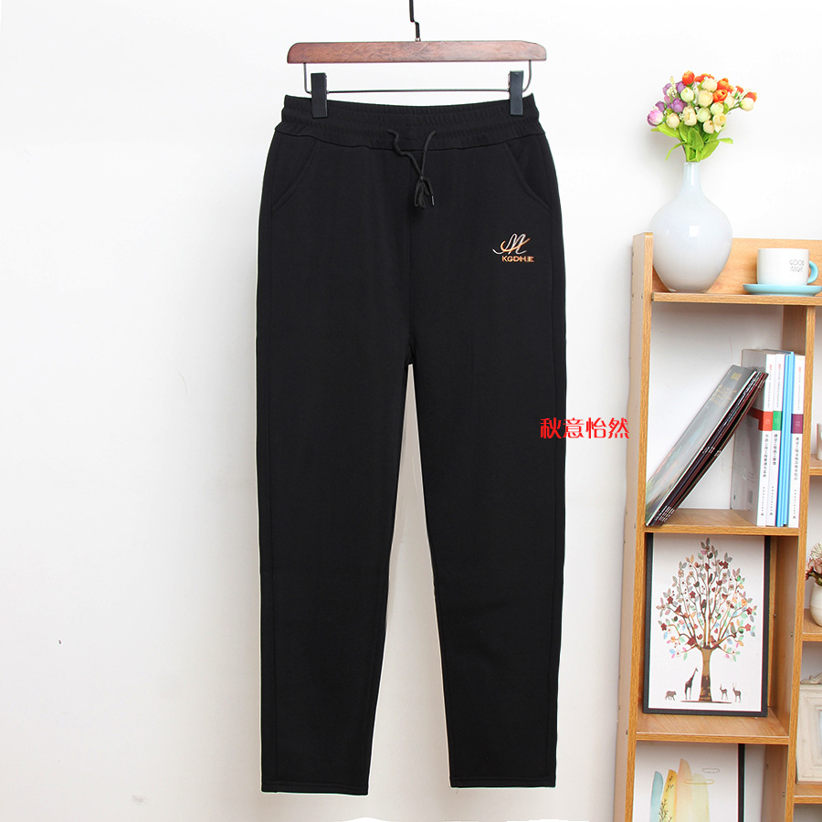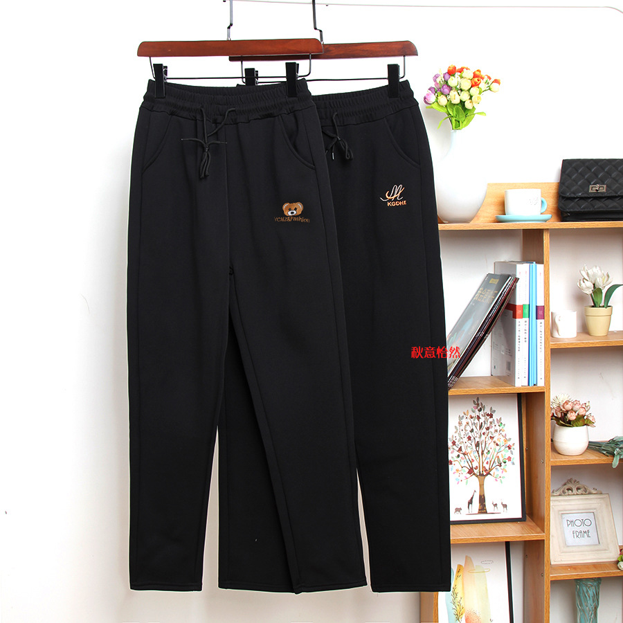 Плюшевые повседневные брюки среднего и пожилого возраста тонкие женские брюки большого размера черные прямые брюки толстые табачные брюки весной