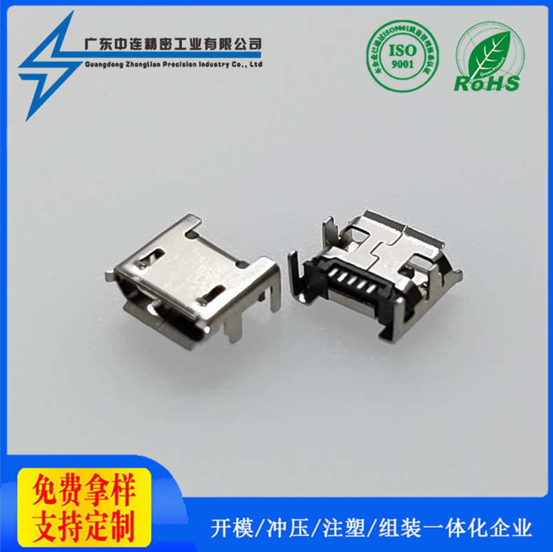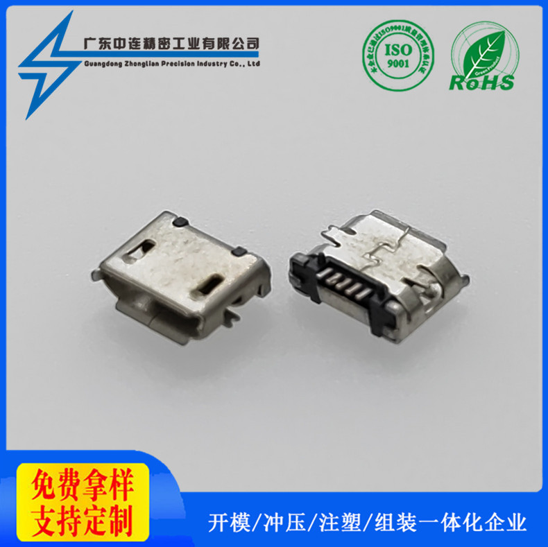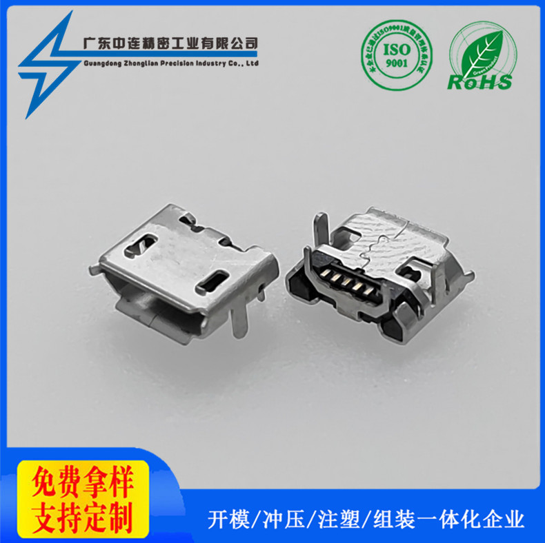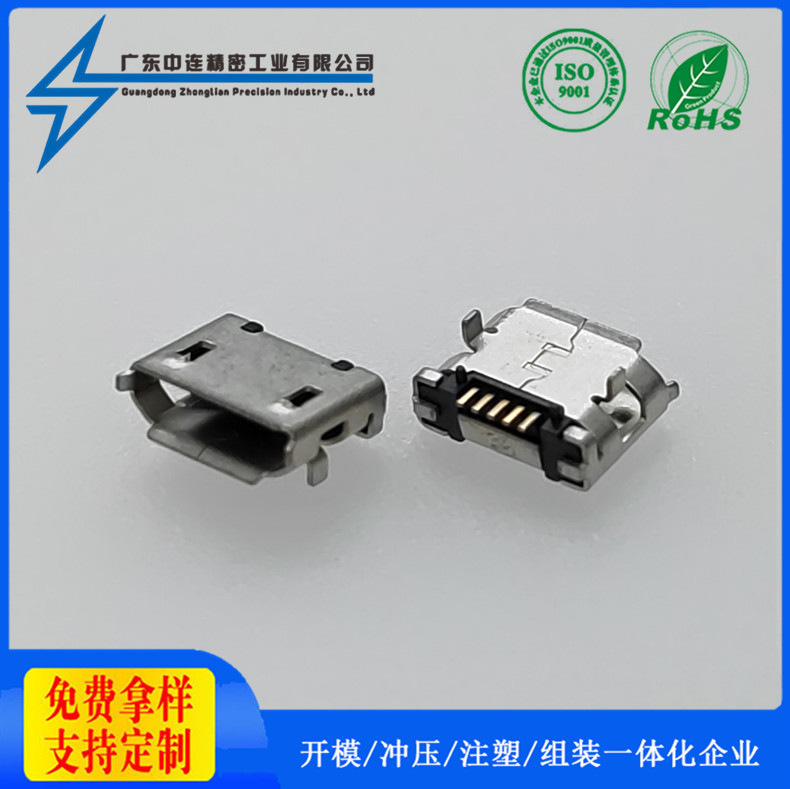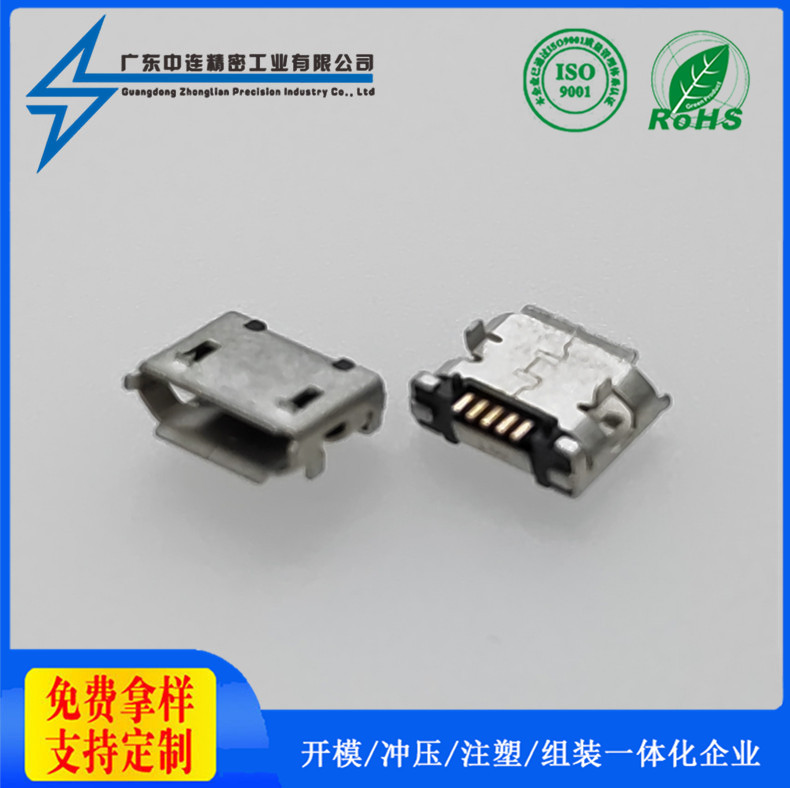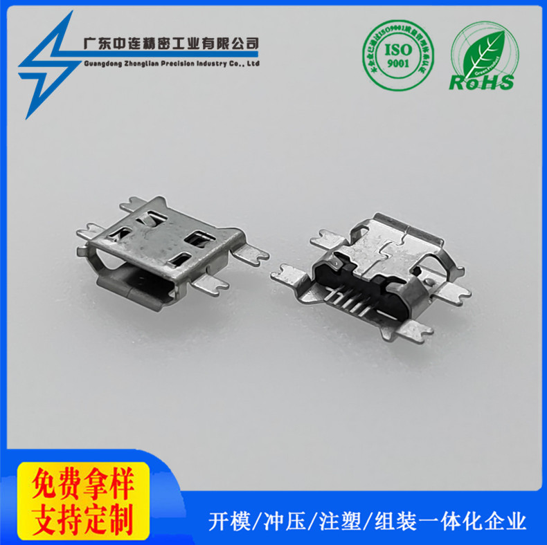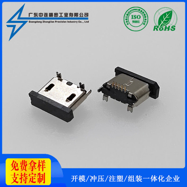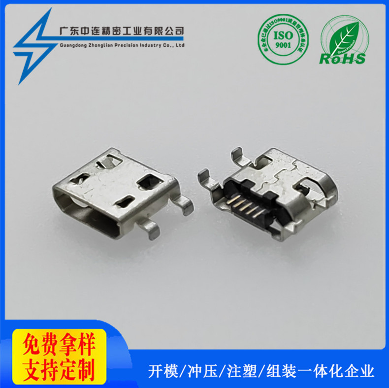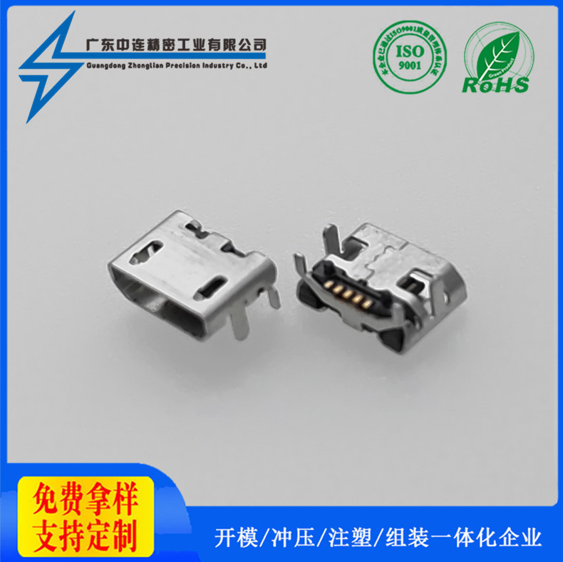 Разъем MICRO USB (гнездо), тип «большой и малый штекер», полностью встраиваемый, с креплением на панель, четырехконтактный, для зарядки