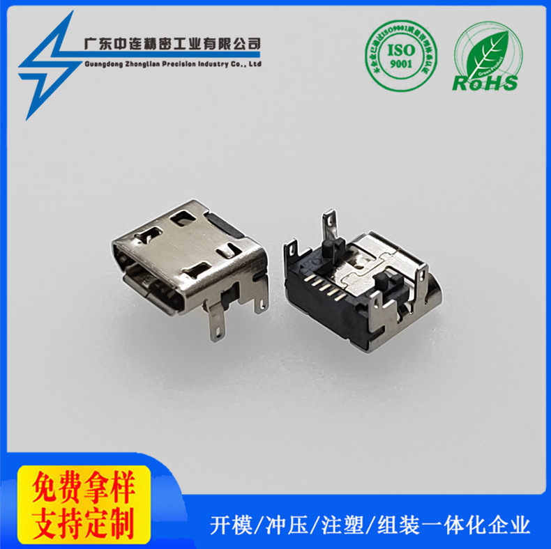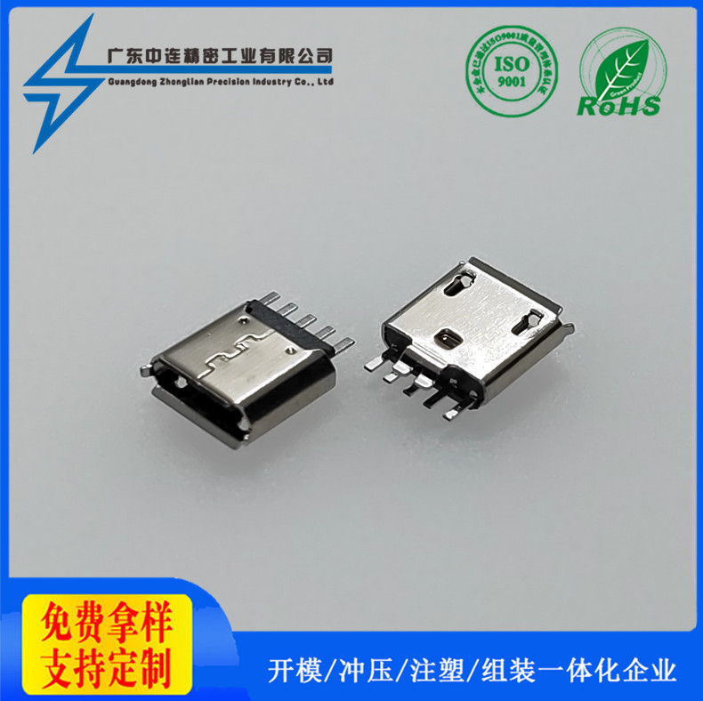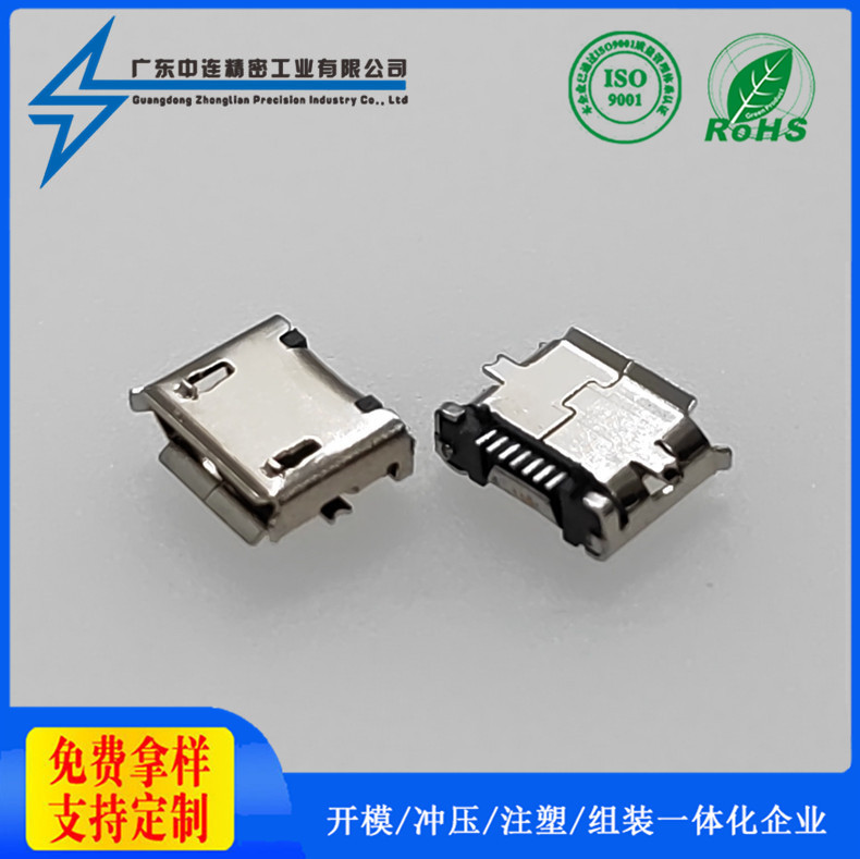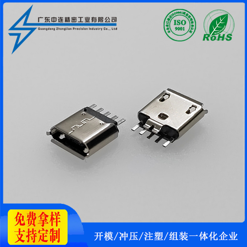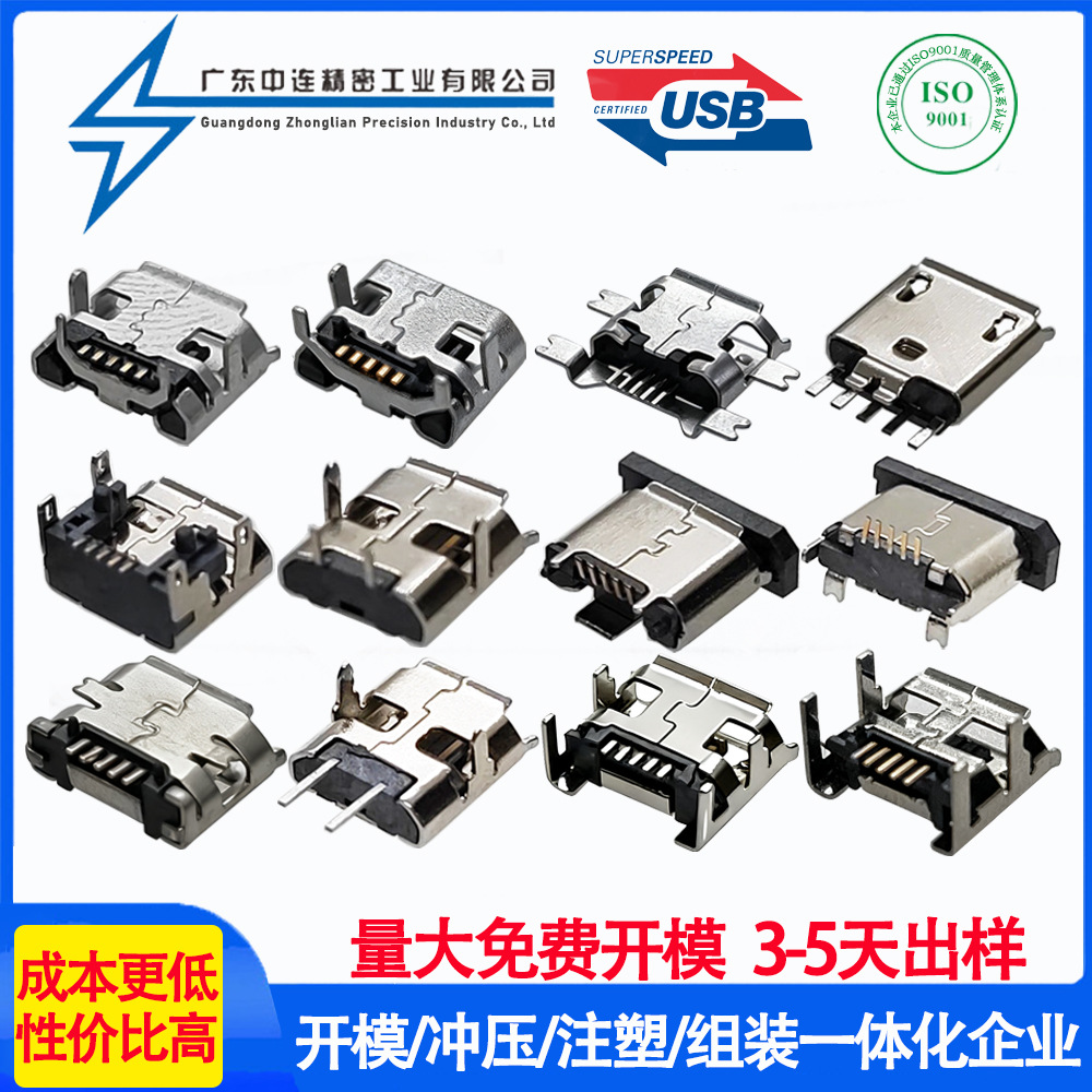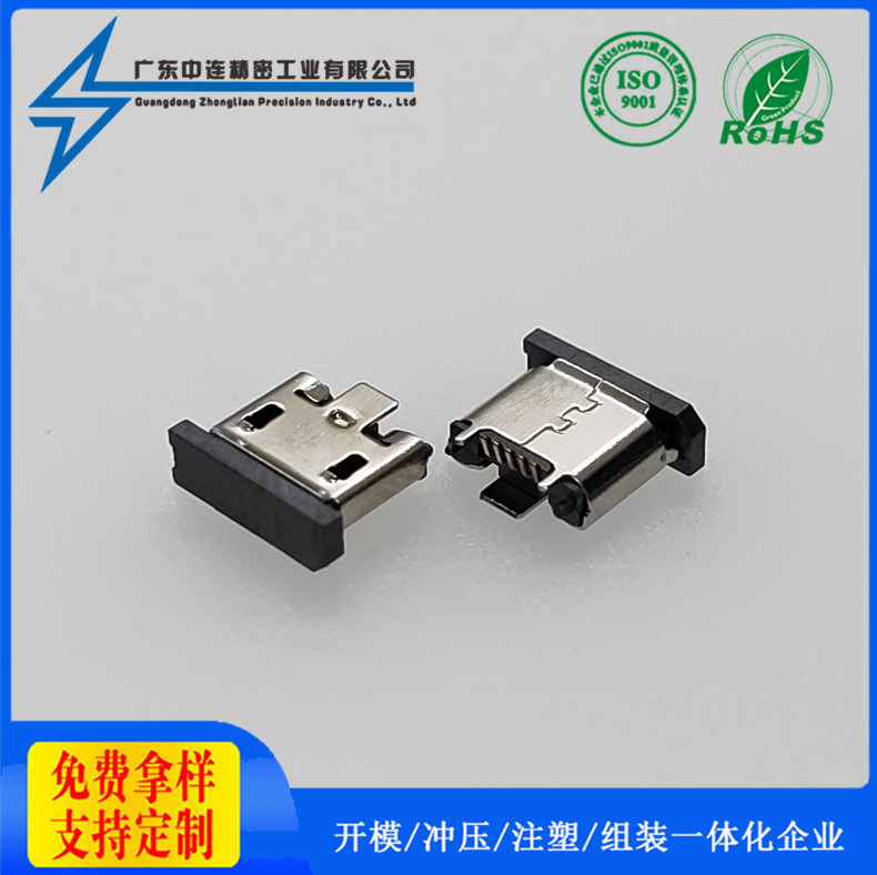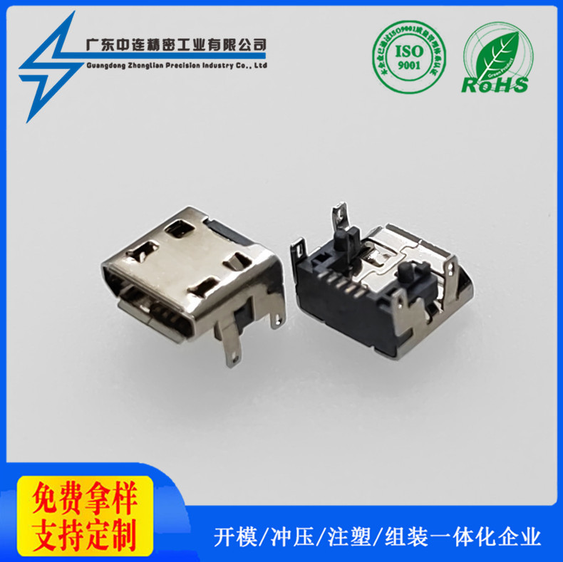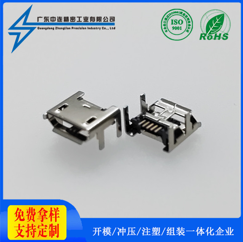 Разъем MICRO USB (гнездо), тип «большой и малый штекер», полностью встраиваемый, с креплением на панель, четырехконтактный, для зарядки