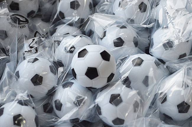 (4)足球如果停在场中不动或跳出桌面,由开球者再次开球或将足球置于靠近一角的高处,使足球自然滚动,此为边球或角球。