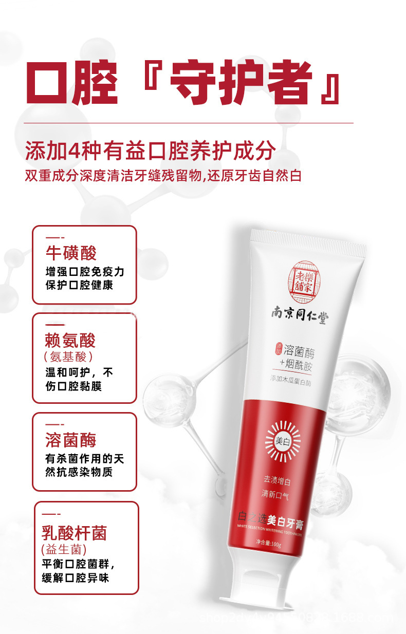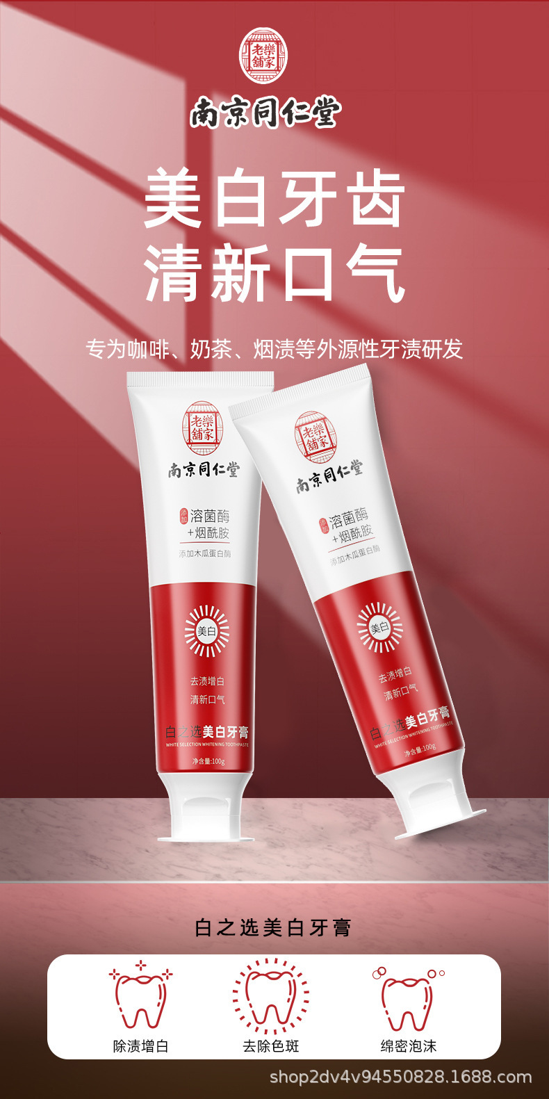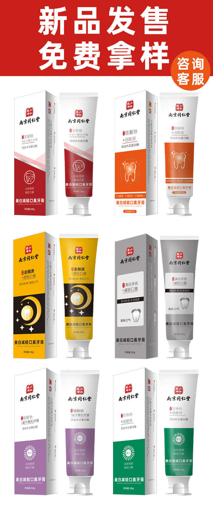 [Нанкин Тонгрентанг] Отбеливающая и уменьшающая неприятный запах изо рта зубная паста-; Новая зубная паста для десен [ферментное отбеливание и удаление желтизны] 100 г; Новый хит продаж: [Отбеливающие отбеливающие гранулы для восстановления цвета] Зубная паста, 100 г; Новинка: [Нанкин Тонгрентанг] Отбеливающая зубная паста для желтых зубов; [Нанкин Тонгрентанг] Отбеливающая зубная паста для уменьшения неприятного запаха изо рта, 100 г; [Нанкин Тонгрентанг] пищевая сода освежает дыхание-серебро; [Нанкин Тонгрентанг] Отбеливающая зубная паста с ниацинамидом, красная упаковка