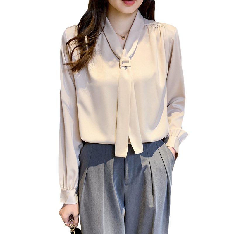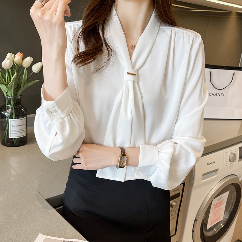 Spot Real Shot 2021, ранняя осень, новая модная элегантная рубашка с длинными рукавами в корейском стиле, шелковистая драпированная рубашка для женщин
