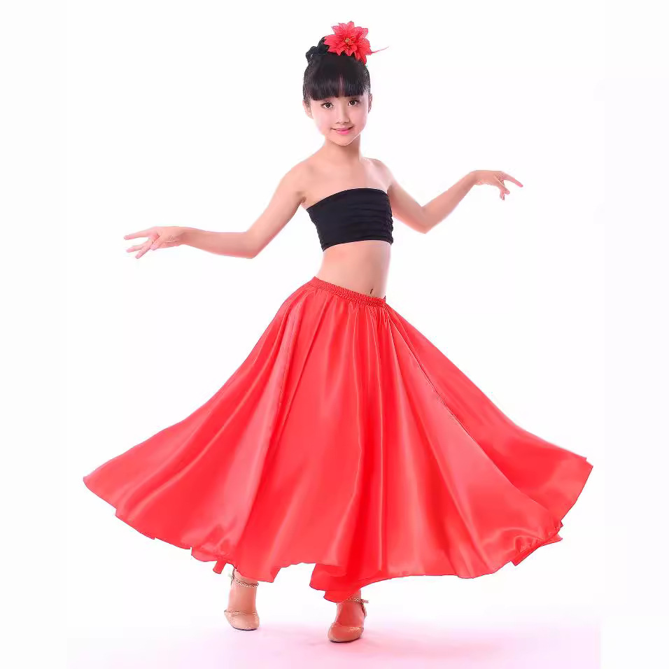 Детский костюм для выступлений, юбка для испанского танца корриды, большая юбка-качели, открывающаяся танцевальная юбка, сценический костюм, женский