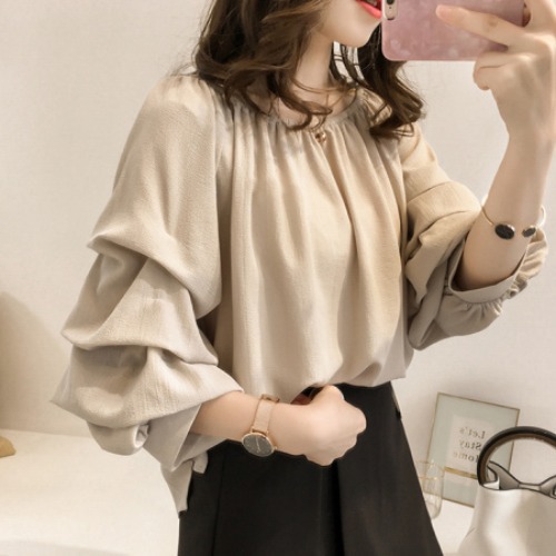 Весенняя шифоновая однотонная хлопковая Базовая рубашка в Корейском стиле для откорма с V-образным вырезом и однотонным воротником со средним рукавом для одного символа