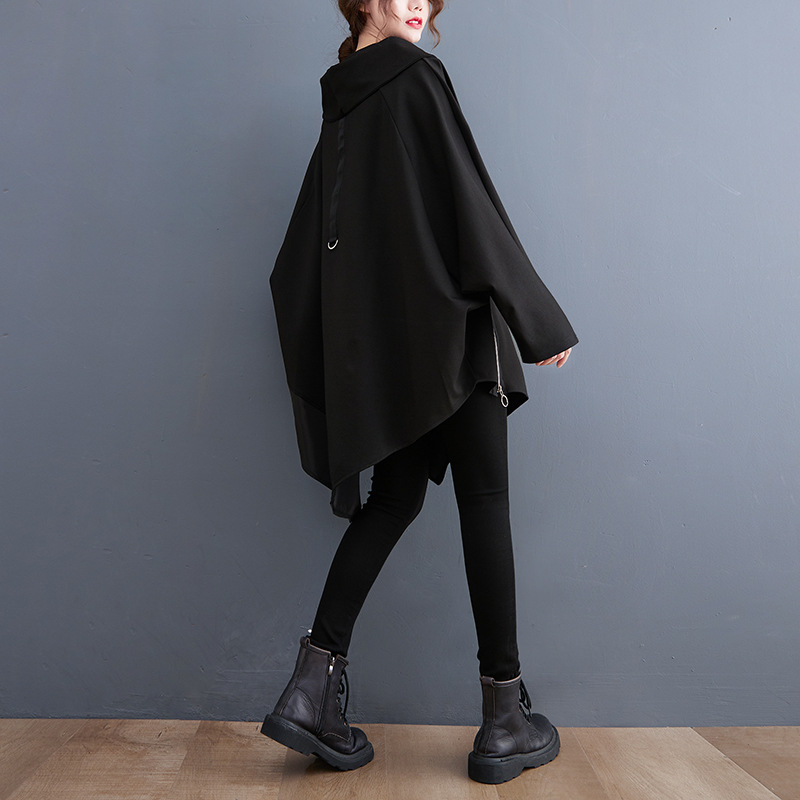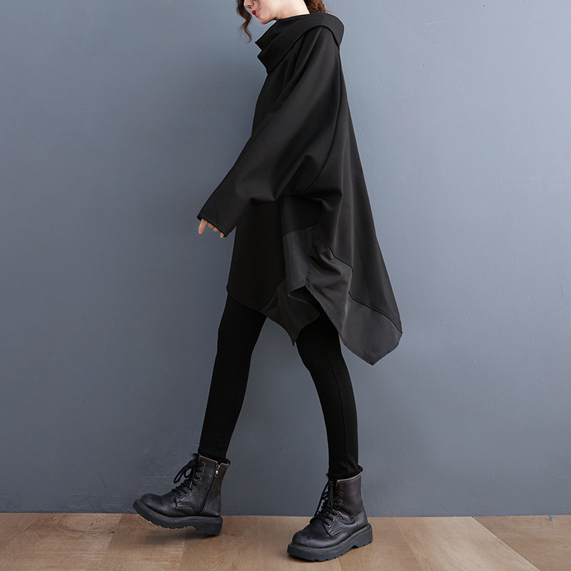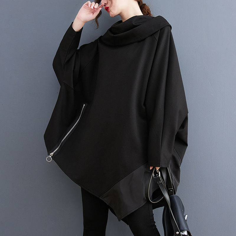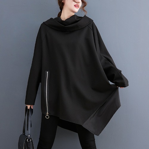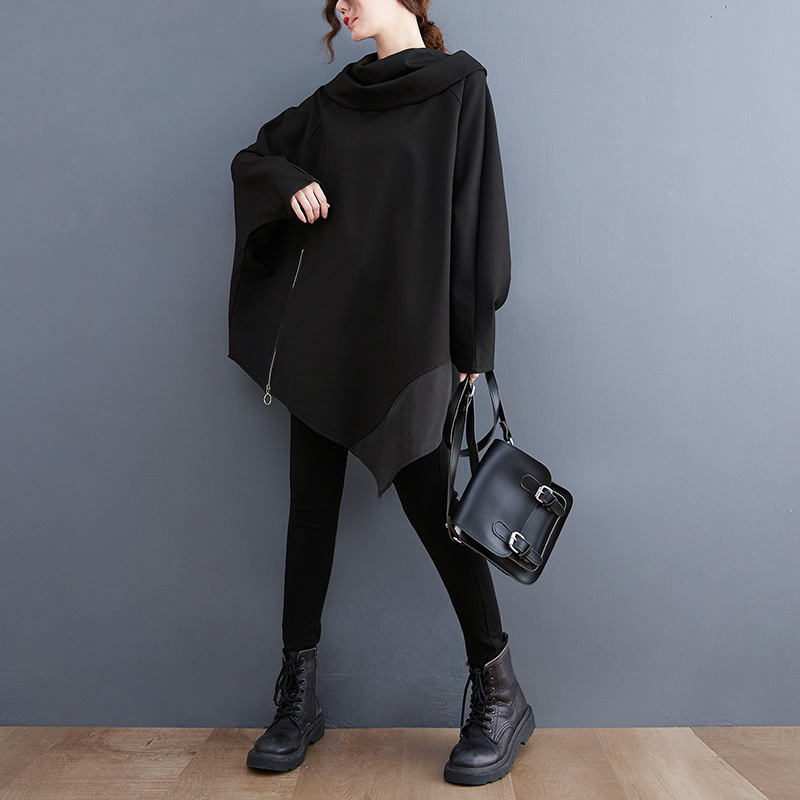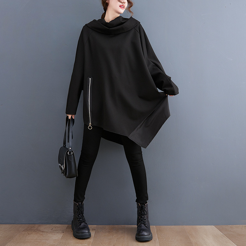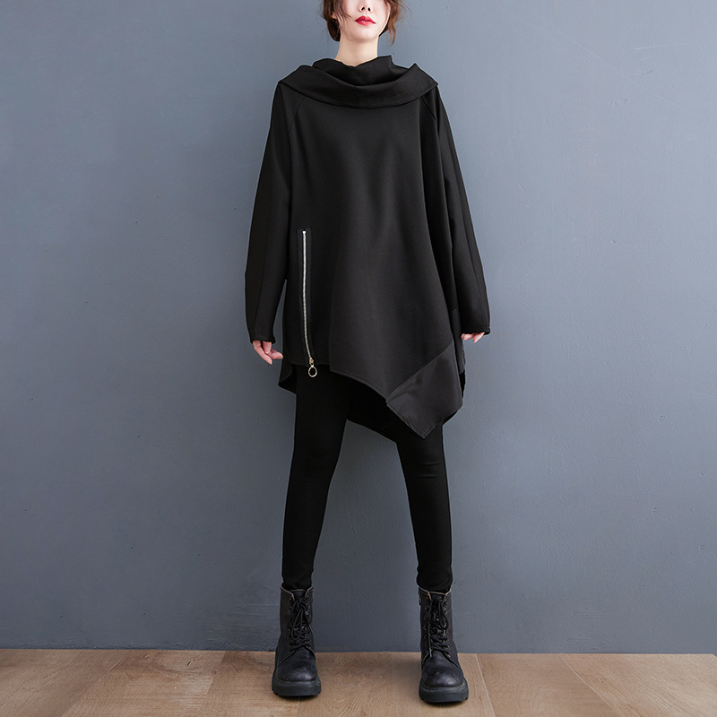 Весна 2025, новый корейский стиль, большой размер, пуловер с воротником-стойкой, длинный рукав, асимметричная миди-толстовка в корейском стиле