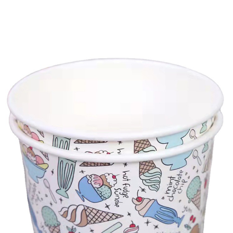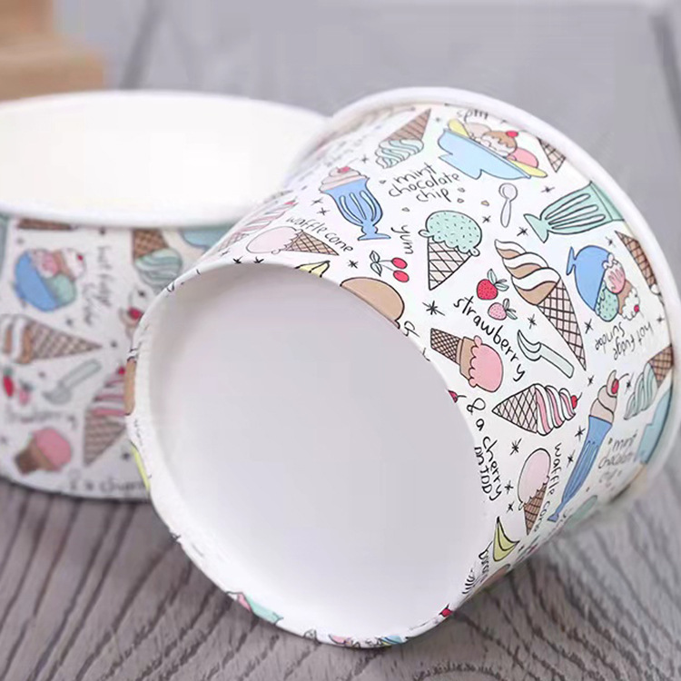 Одноразовая бумажная миска для мороженого с логотипом, чашка для йогурта, бумажная миска для мороженого, десертная бумажная крышка с принтом, чашка для мороженого