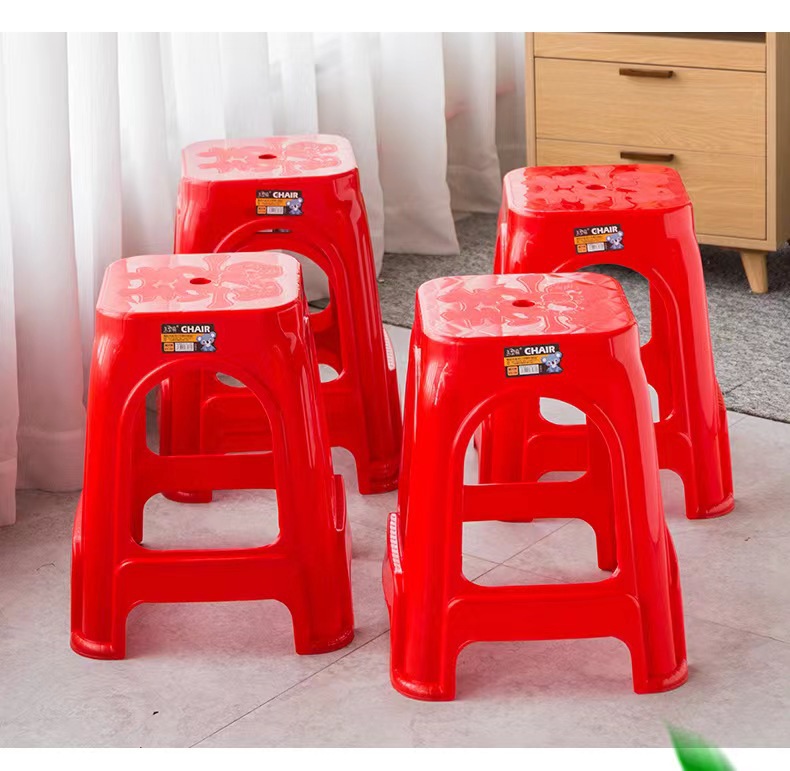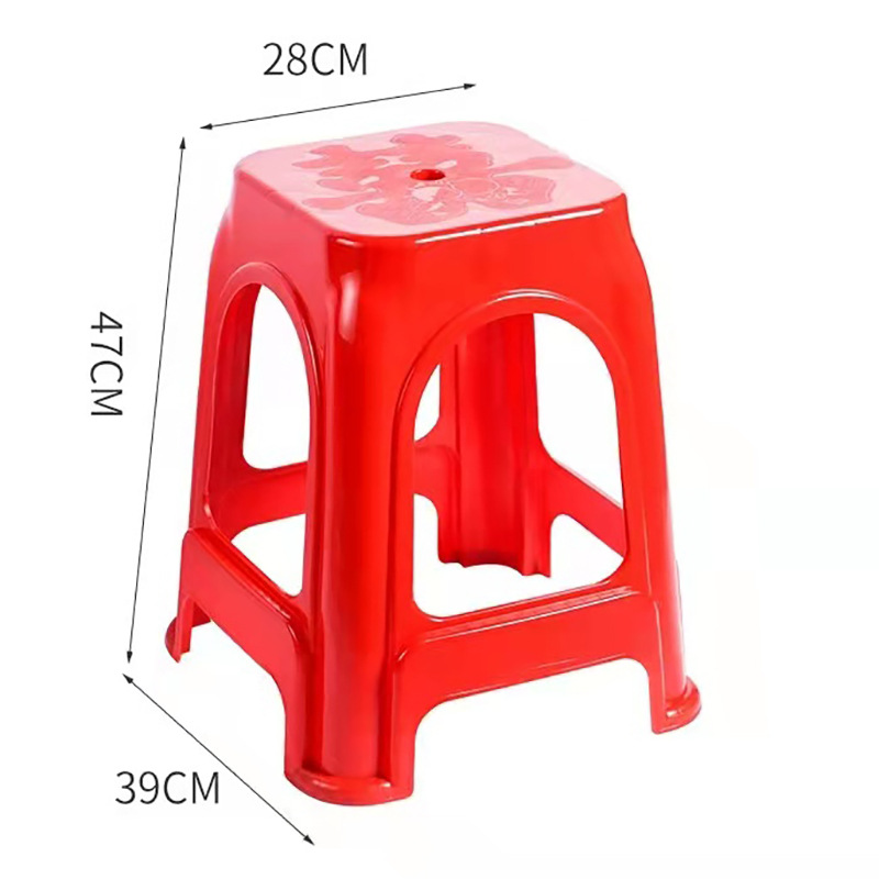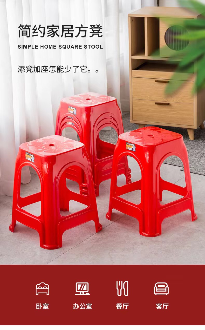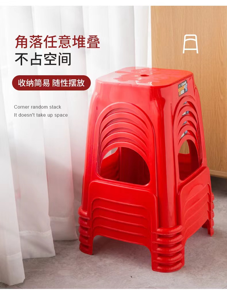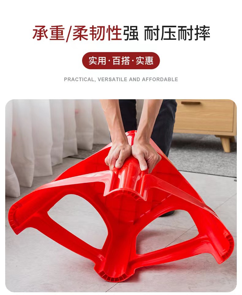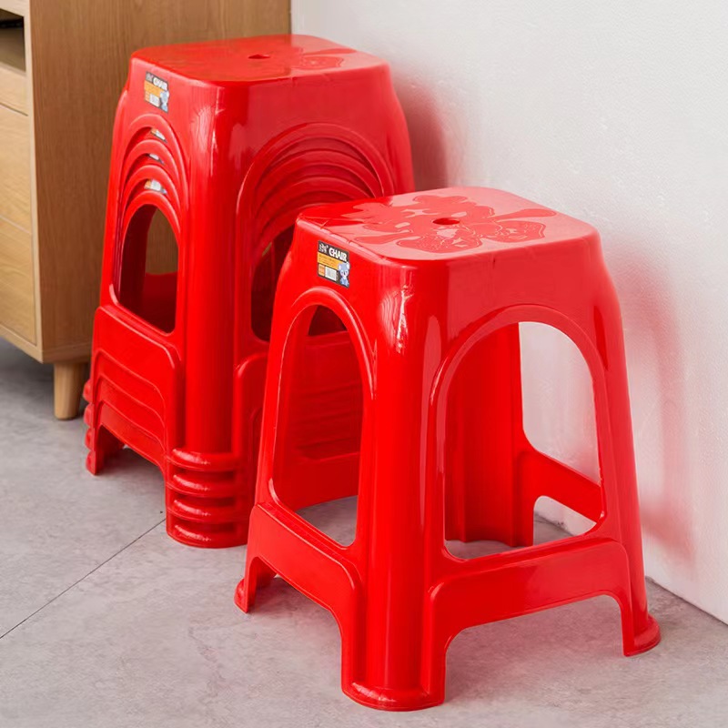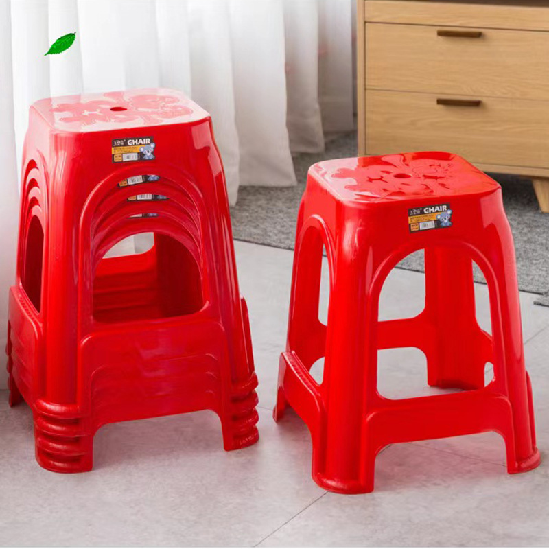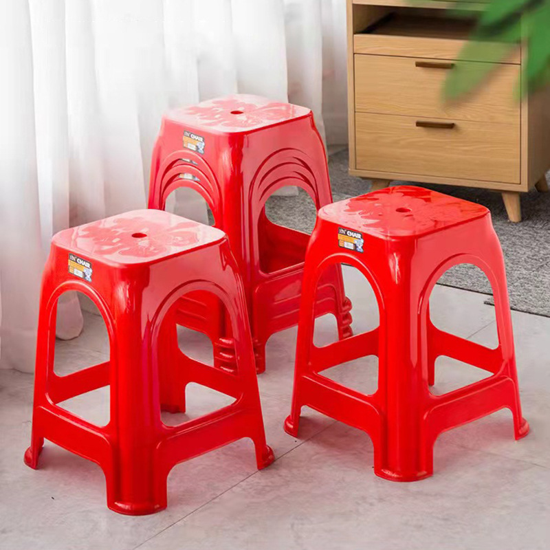 Пластиковые табуреты, красные обеденные стулья, утолщенные высокие квадратные табуреты для взрослых с противоскользящими ножками, складные, оптом, из полипропилена.