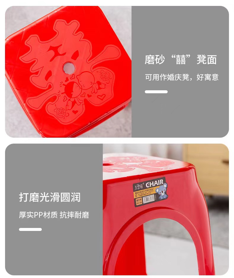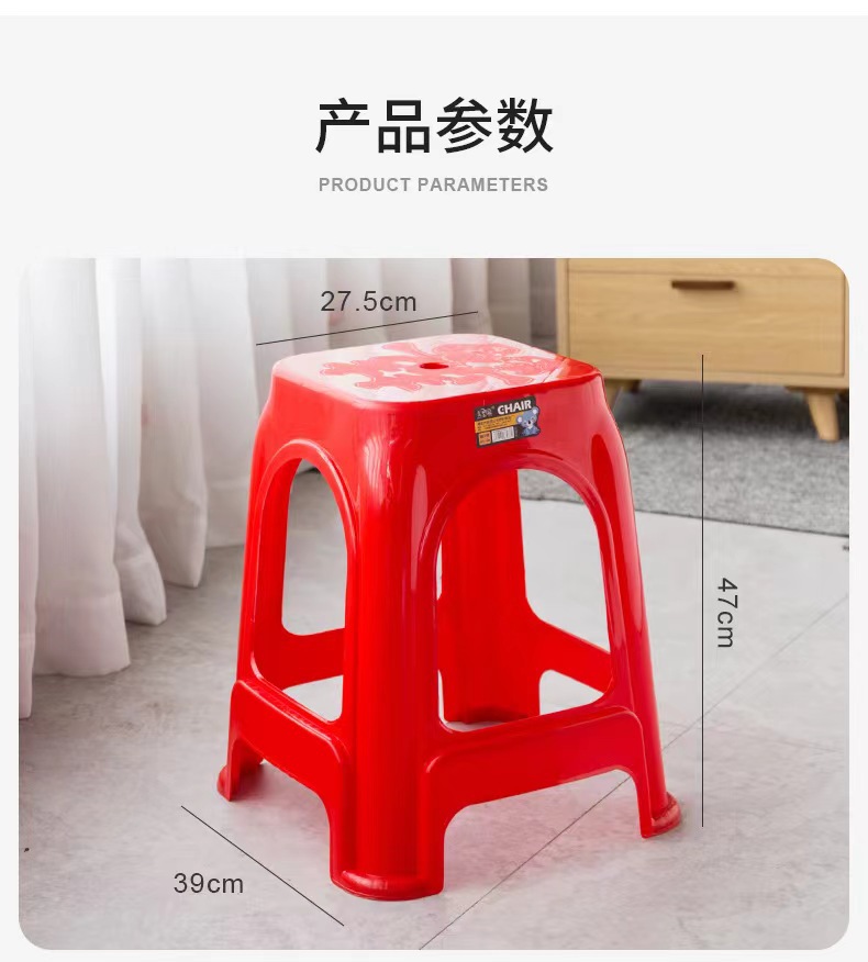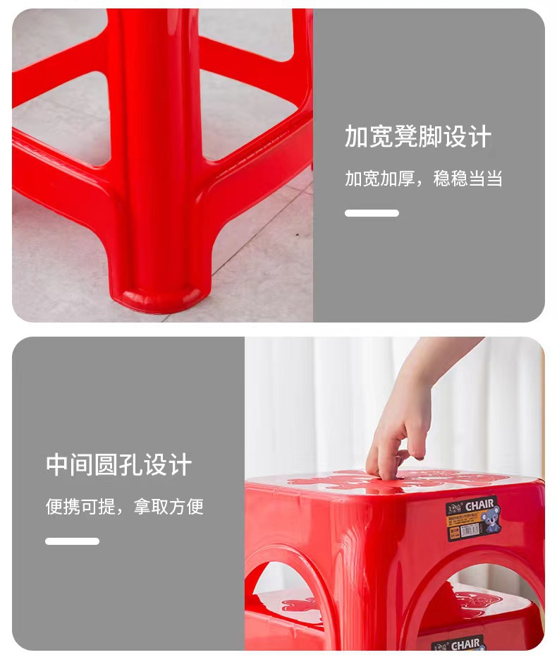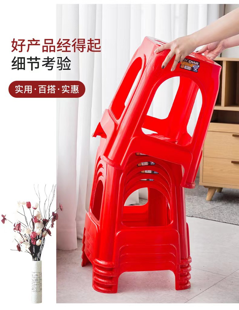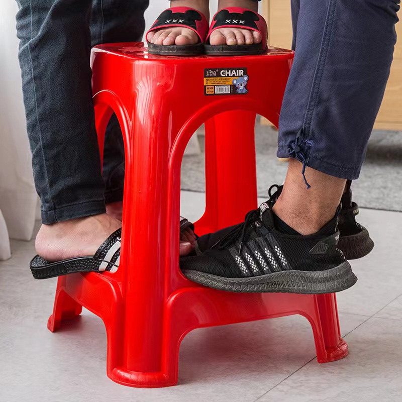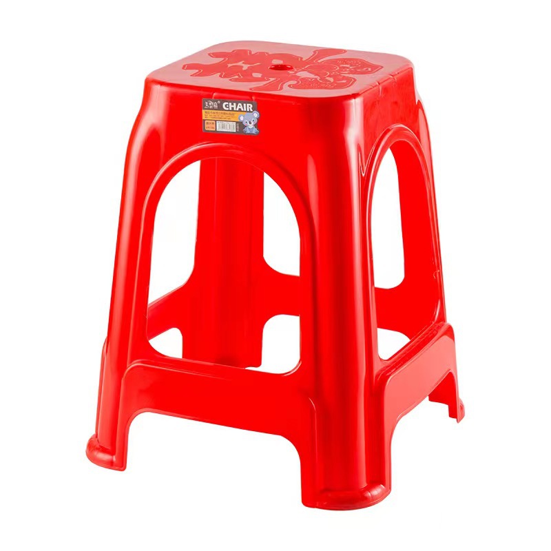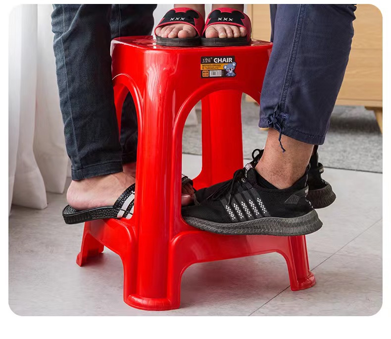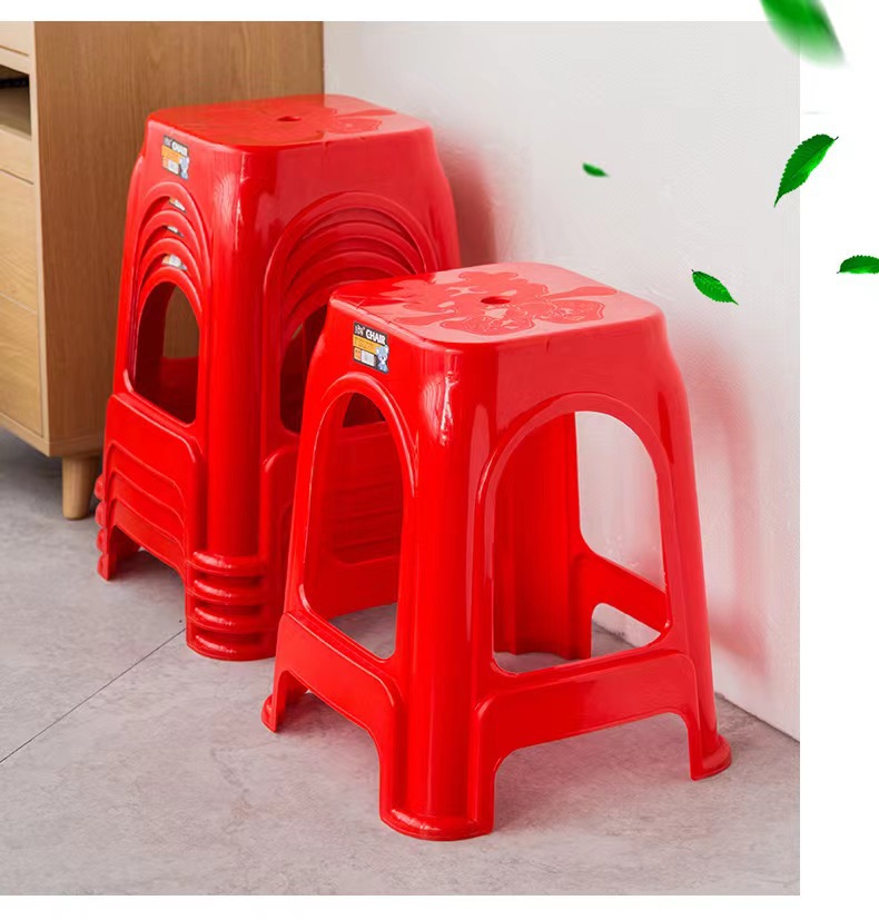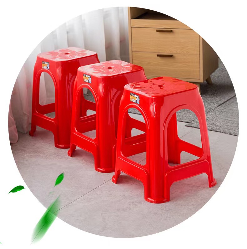 Пластиковые табуреты, красные обеденные стулья, утолщенные высокие квадратные табуреты для взрослых с противоскользящими ножками, складные, оптом, из полипропилена.