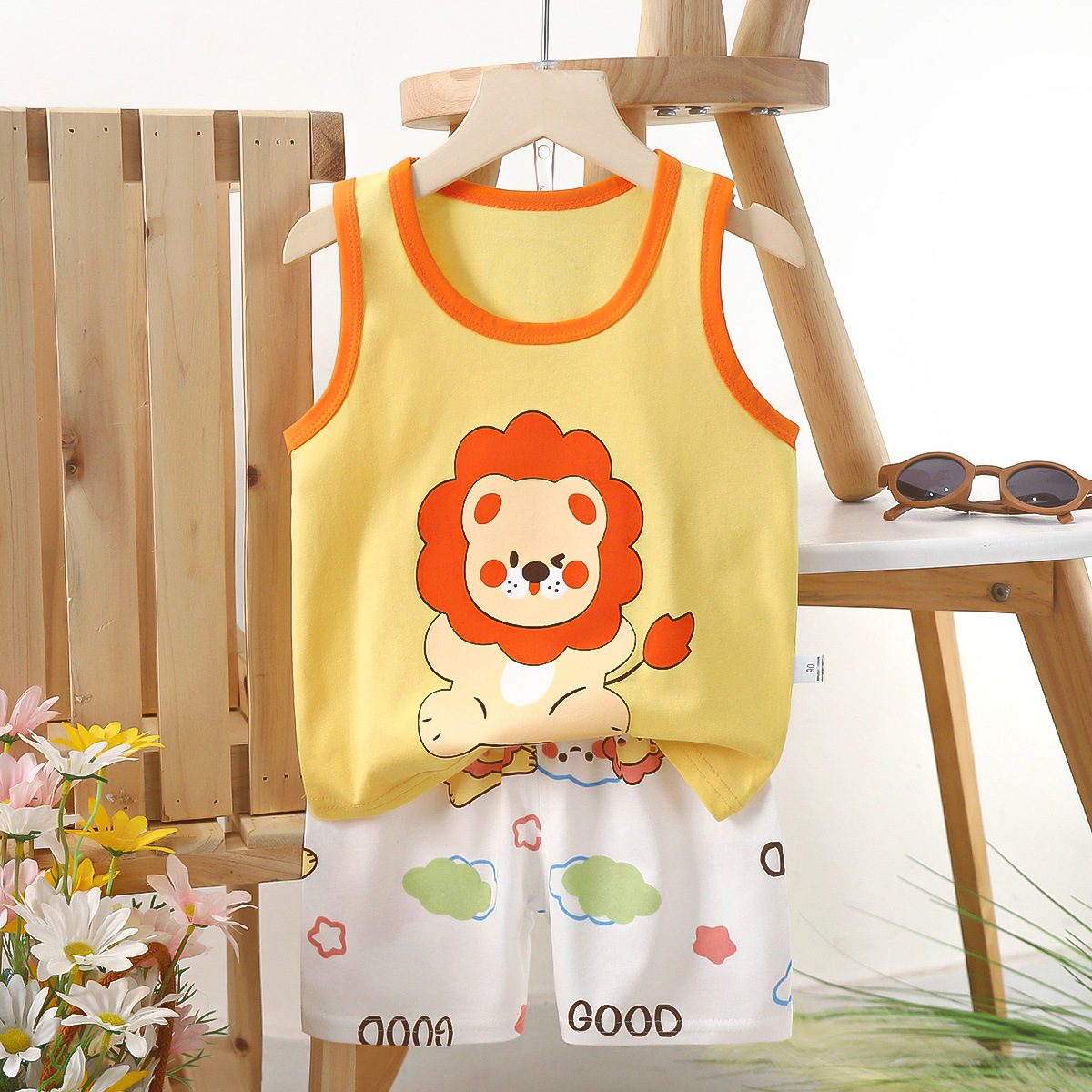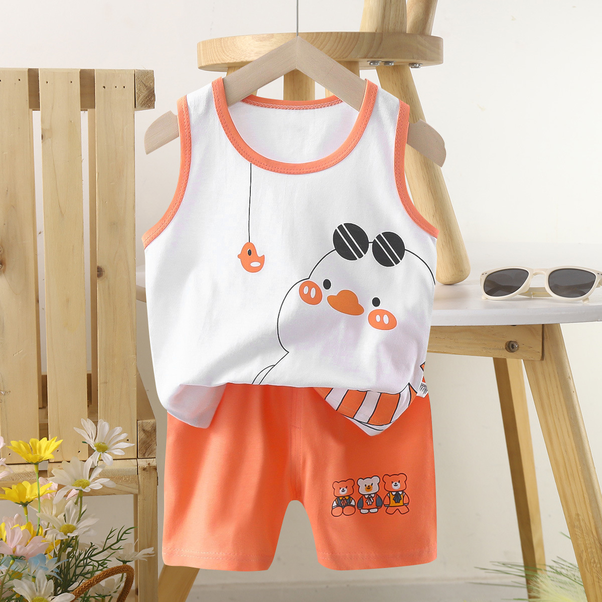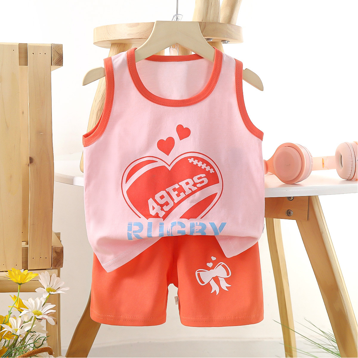 Детский комплект жилета из чистого хлопка, летняя одежда для девочек, детская одежда в корейском стиле, новинка 2025, летний комплект из двух предметов для мальчиков, оптовая продажа