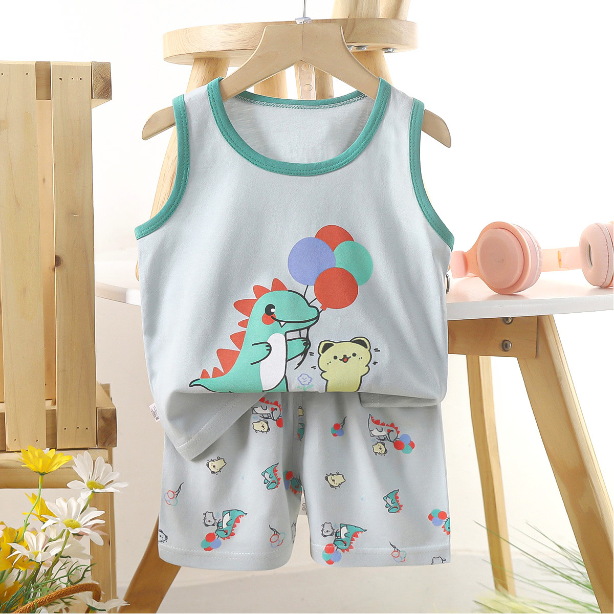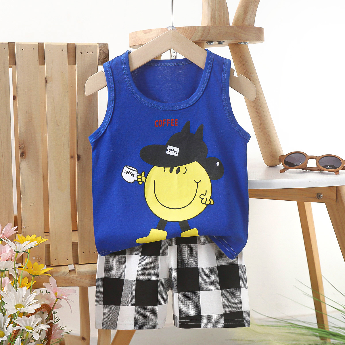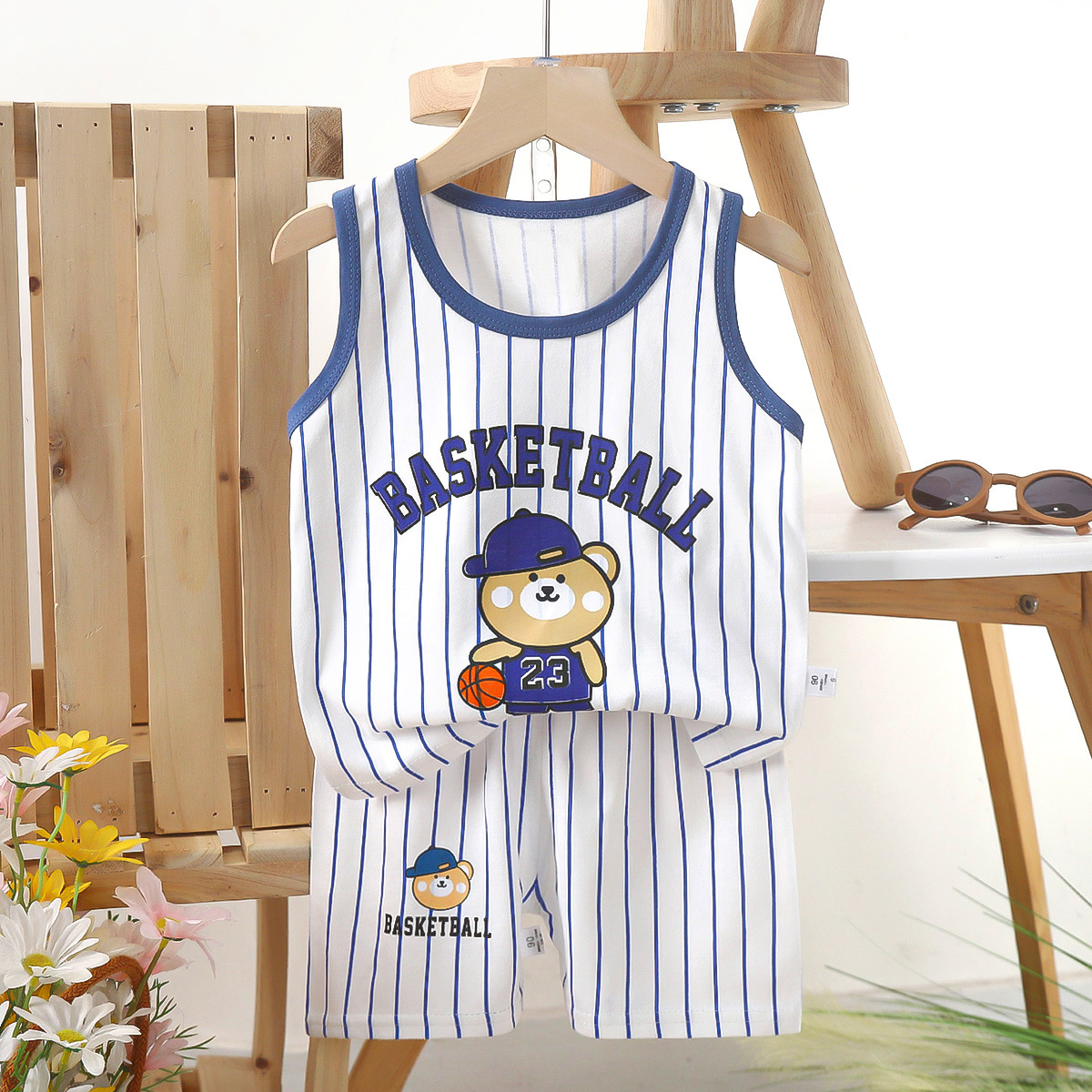 Детский комплект жилета из чистого хлопка, летняя одежда для девочек, детская одежда в корейском стиле, новинка 2025, летний комплект из двух предметов для мальчиков, оптовая продажа