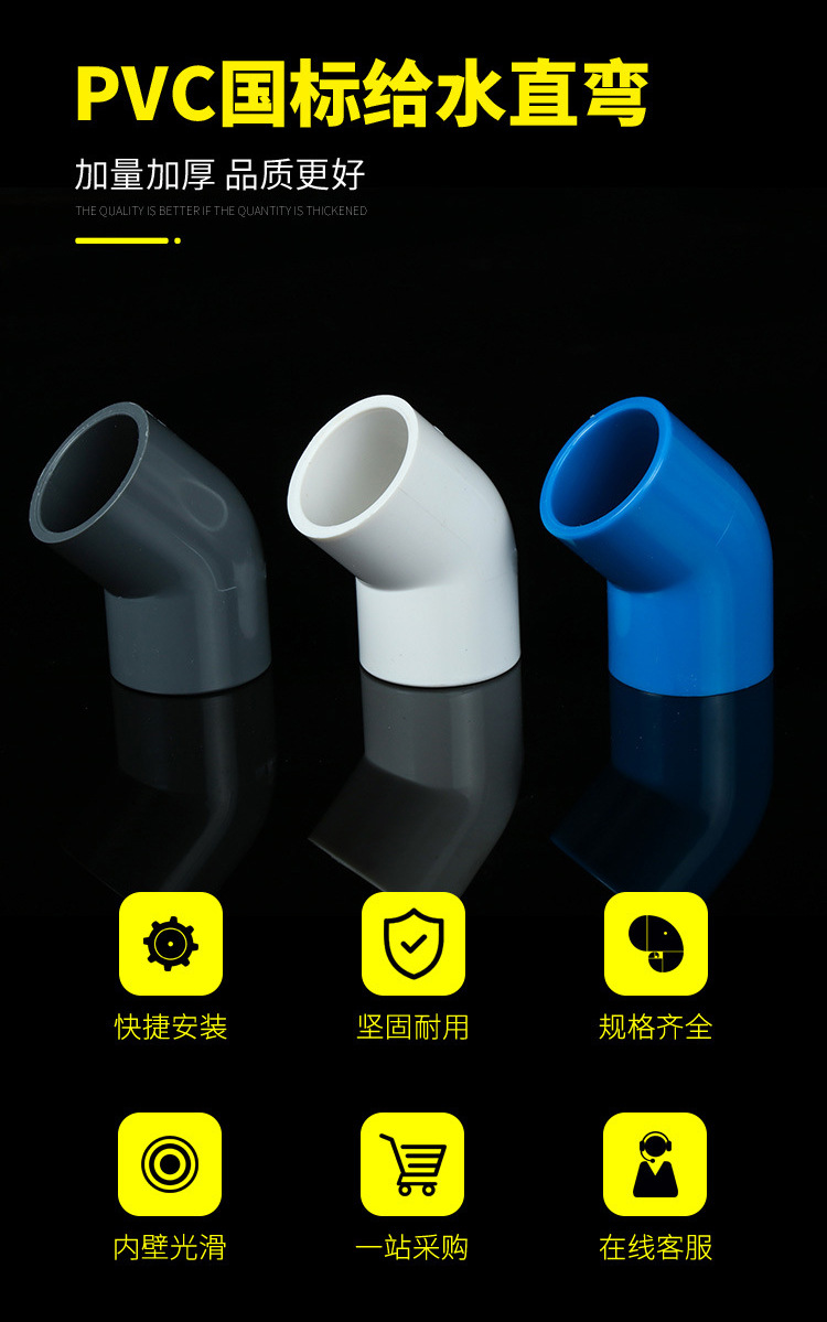 ПВХ водоснабжения 45 градусов локоть прямой изгиб половина загиб воды трубы совместных утолщенные Белый Серый Синий пластиковые трубы фитинги оптом