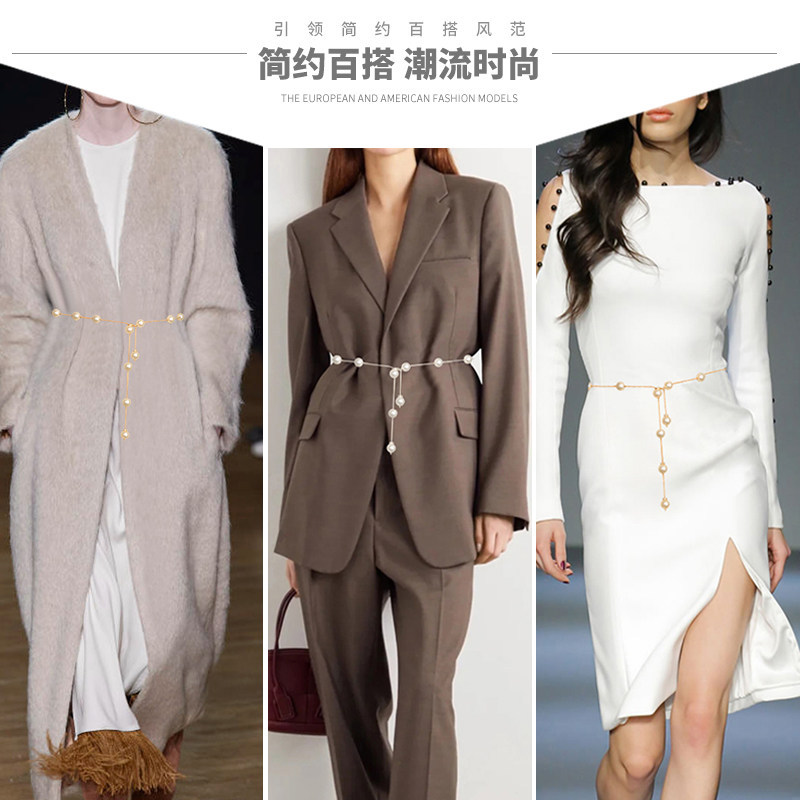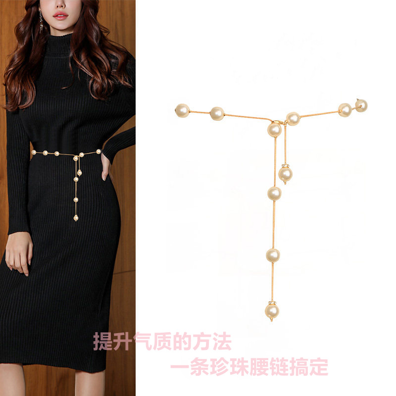 Новая женская цепочка на талию с жемчугом, высококачественная металлическая цепочка, утягивающая талию под юбки, универсальный модный аксессуар для свитеров