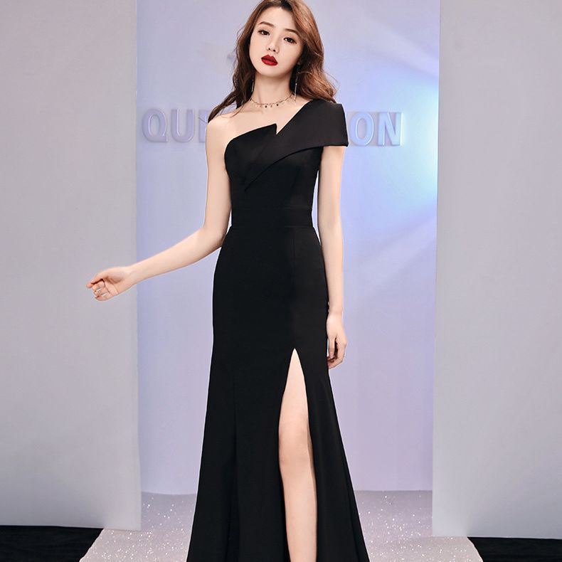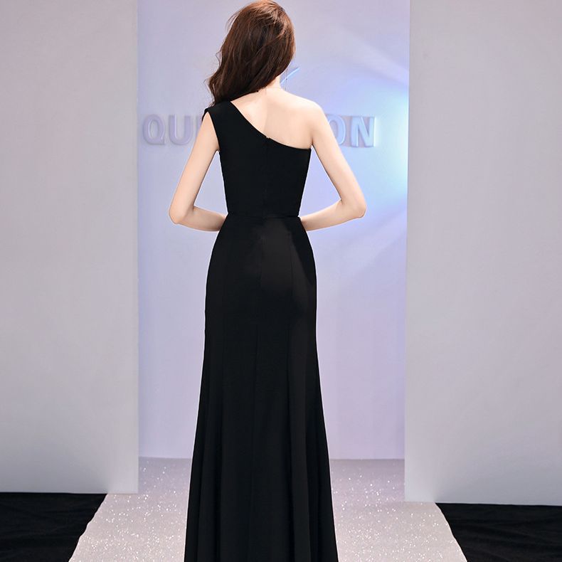 Вечернее платье хозяина, легкое роскошное нишевое Черное длинное платье на одно плечо, женское платье-годе с открытыми плечами