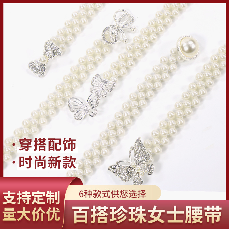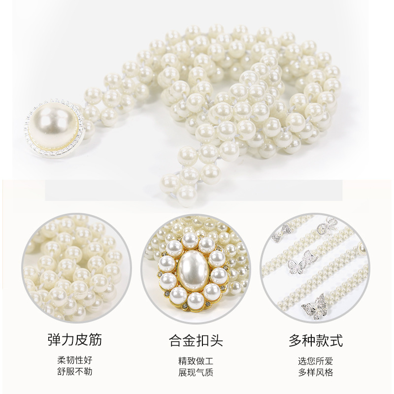 Новый жемчужный эластичный пояс, женский костюм, модная поясная цепочка, украшение для женского платья, эластичный пояс с уплотнением талии для женщин