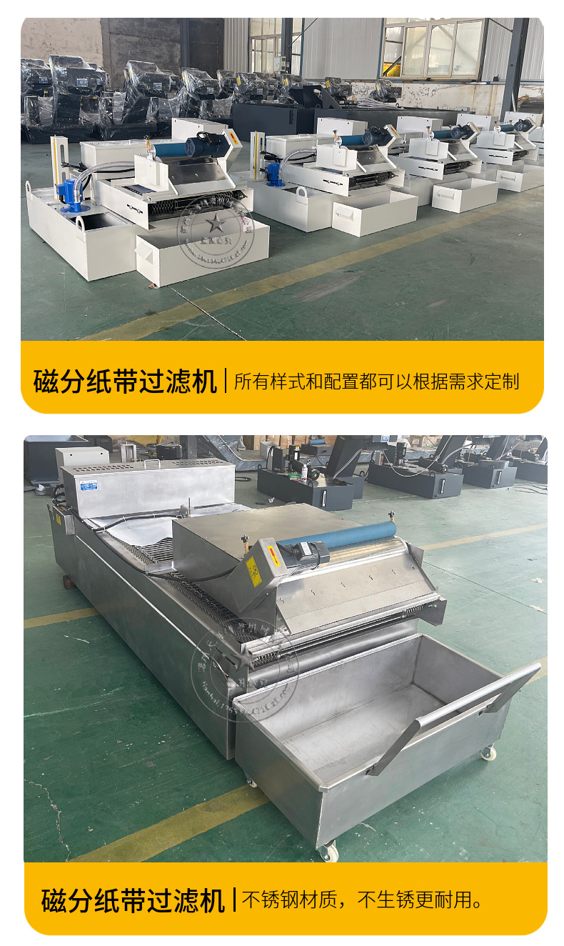 加工非铁磁性材料,如不锈钢,废液只有非铁磁性杂质,一般都采用纸带过滤机。