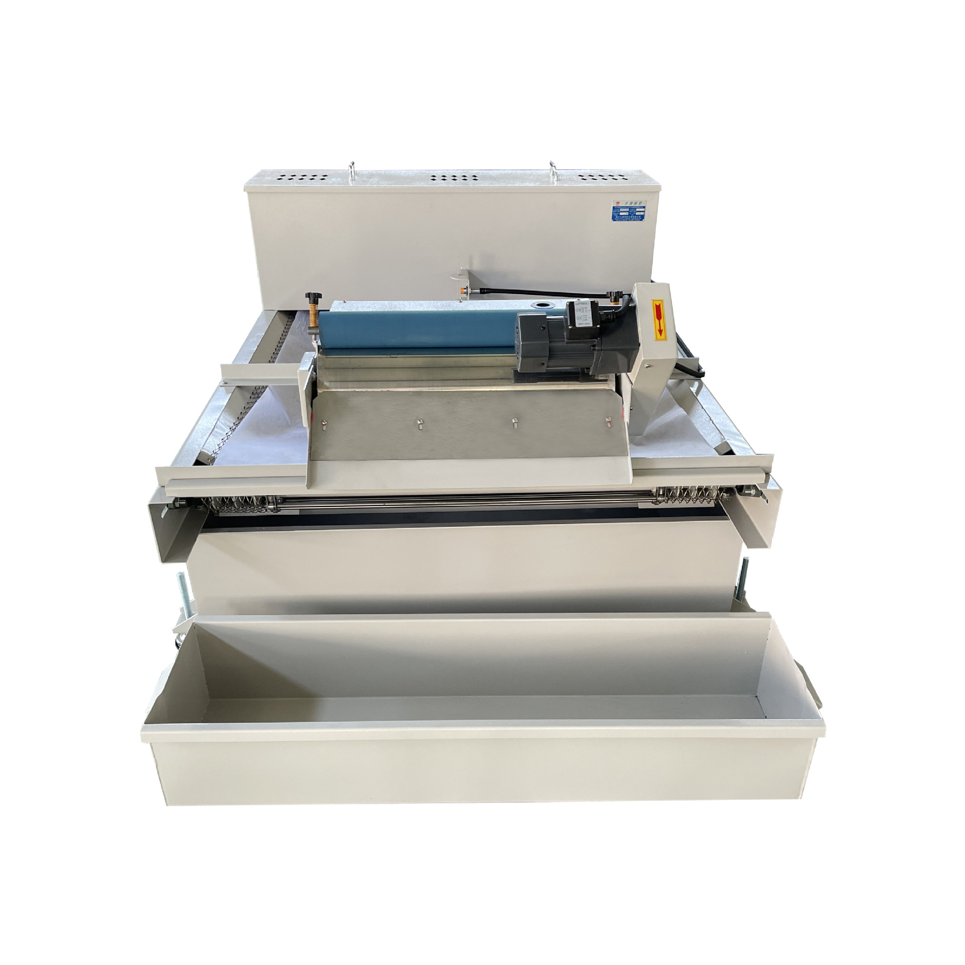 2,强迫式纸带过滤机,负压纸带过滤机、正压式纸带过滤机、霍夫曼纸带过滤机等系列,这种过滤机能够做到5000L/min的的流量,过滤精度10微米,全自动过滤,含冲刷、除油、增氧系统,这种过滤形式为近几年发展的趋势,例如负压式综合过滤系统,包含刮屑系统、过滤系统、磁分离系统、增氧系统、除油系统、收纸系统组成。