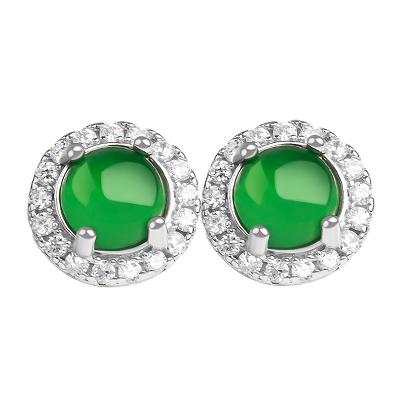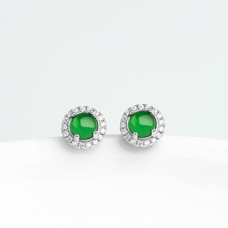 Натуральные товары Нефритовое яйцо поверхность Ян зеленые серьги лед нефрит Мода S925 Серебряная Инкрустация женские серьги оптом
