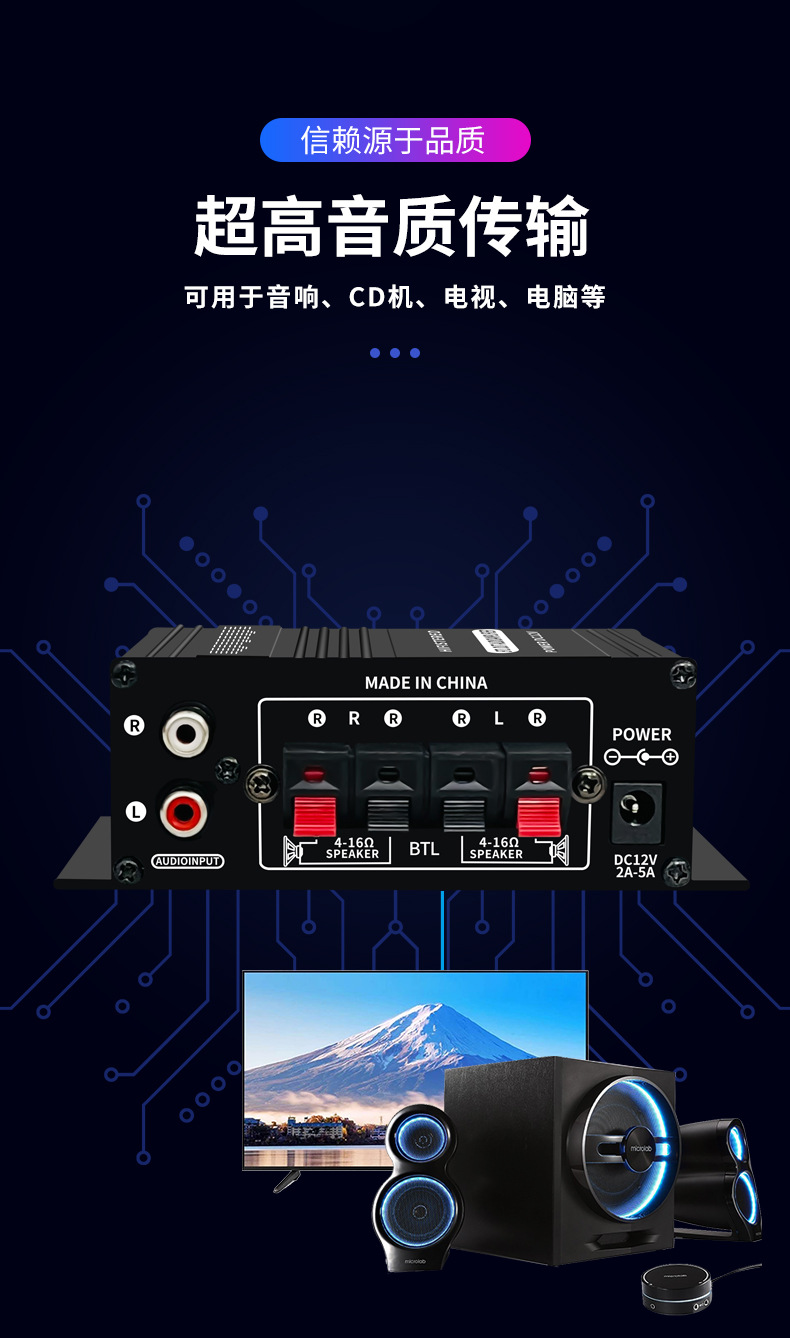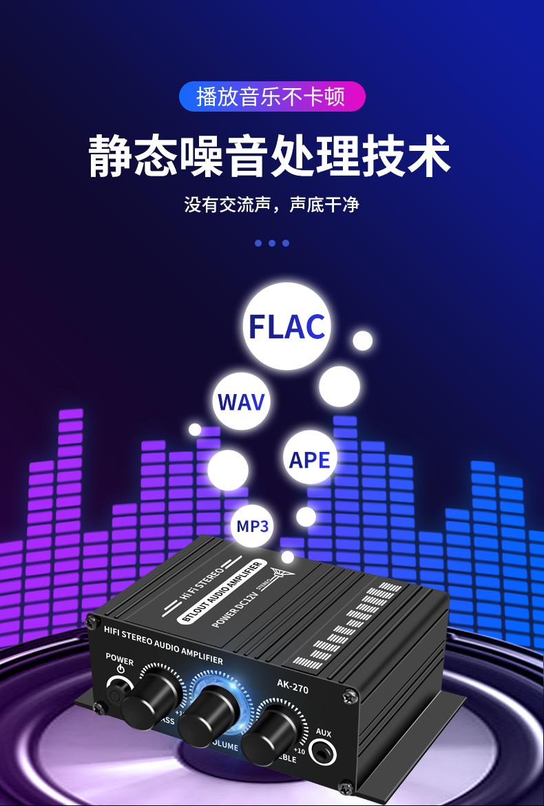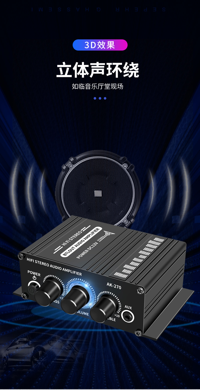 Трансграничный автомобильный домашний стерео мини-усилитель, компьютерный MP3 вход для мобильного телефона 2-канальный выход AK270