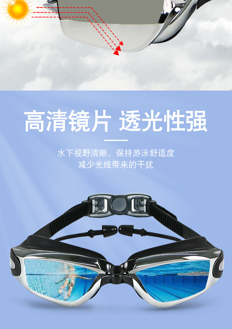 Трансграничные плавательные очки для взрослых противотуманные водонепроницаемые гальванические Соединенные беруши большая рамка силиконовые плавательные очки для близорукости оптовая продажа с фабрики
