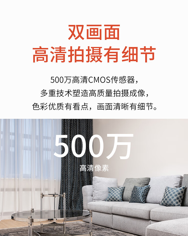 双摄双画面,可兼顾两个不同区域的安防需求,安全守护更全面
