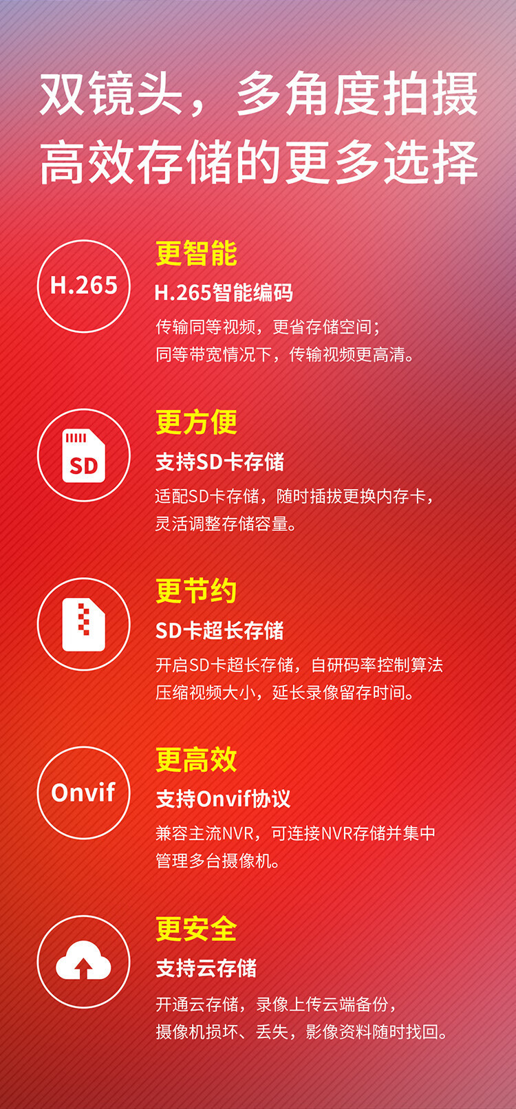 支持H.265编码,更省存储空间。